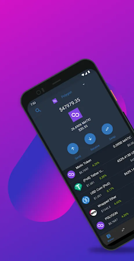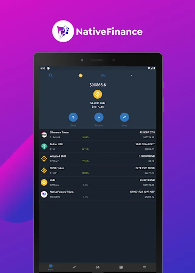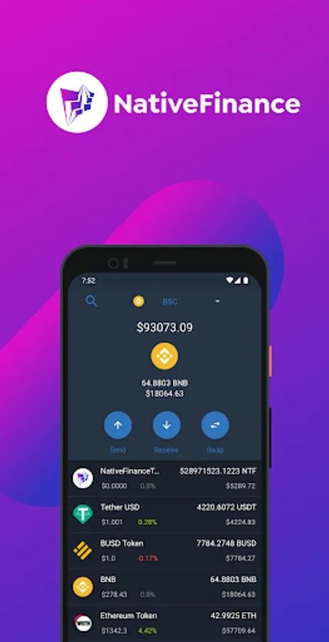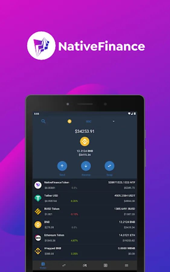 Native wallet makes it easy to find your tokens, check details, find social data, watch the chart and much more!