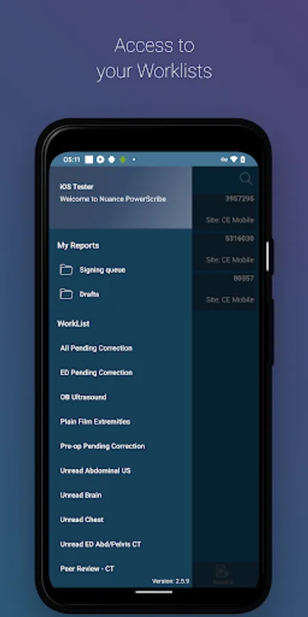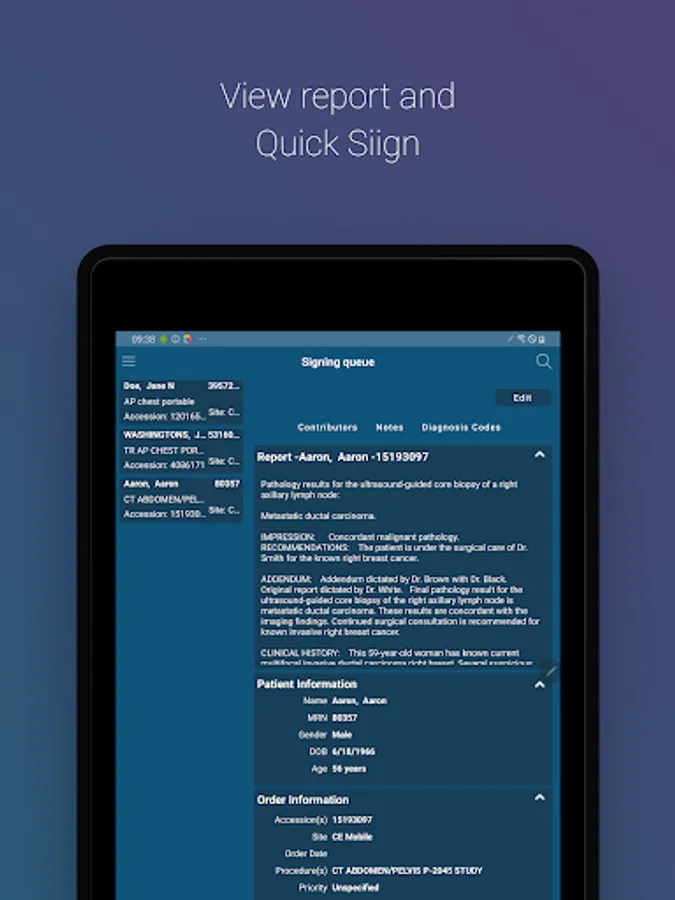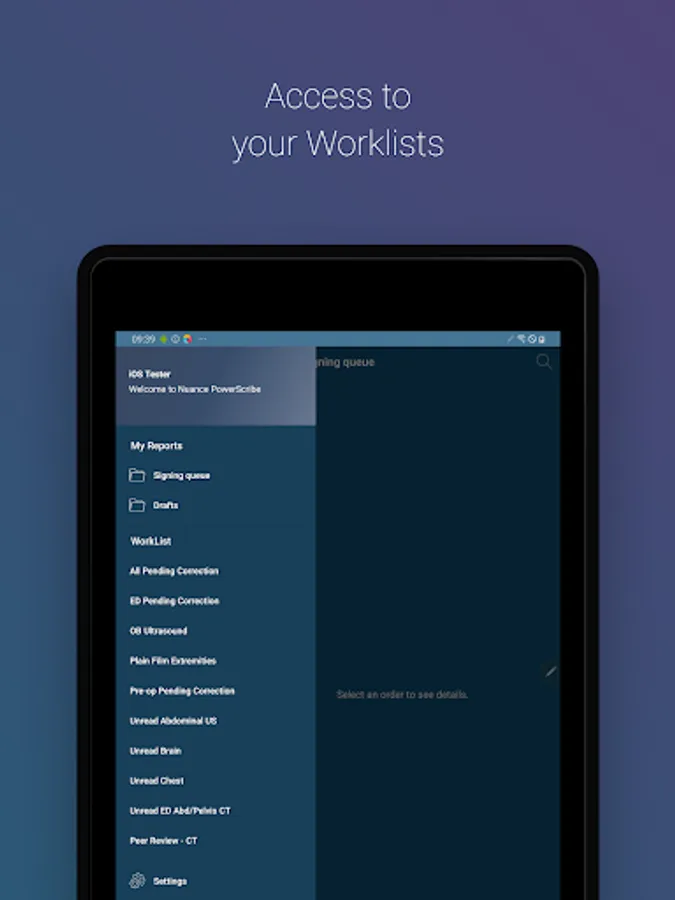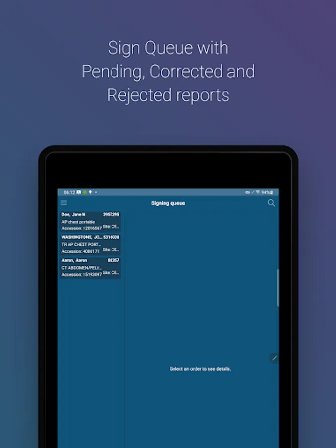 *Reporting Worklists: Provides authorized users with secure access to their worklists. Radiologists can view orders and reports that are present in a worklist that they belong to, and then select a participate record to edit securely edit and sign off from their mobile device.