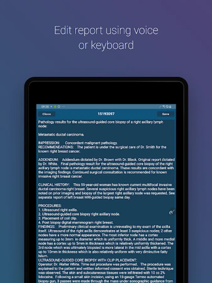 PowerScribe Mobile Radiologist enables medical imaging professionals to search radiology specific content to assist with a diagnosis and to securely sign, create, or edit reports and addenda in PowerScribe Reporting using speech while on the go.