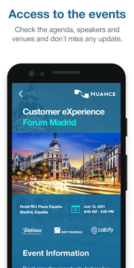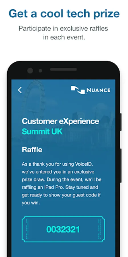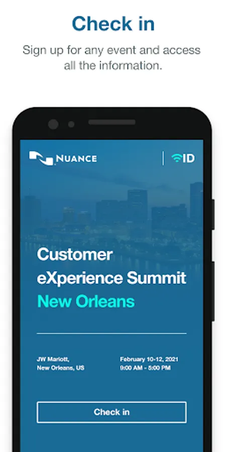 With the Nuance VoiceID app, you can register for any event using just your voice. Once you’re registered, you’ll get instant access to everything from the location and timings to the agenda and speaker info.