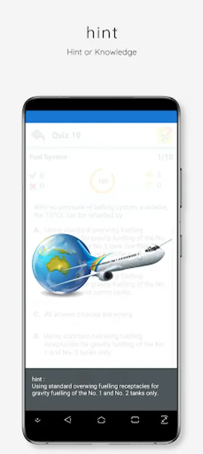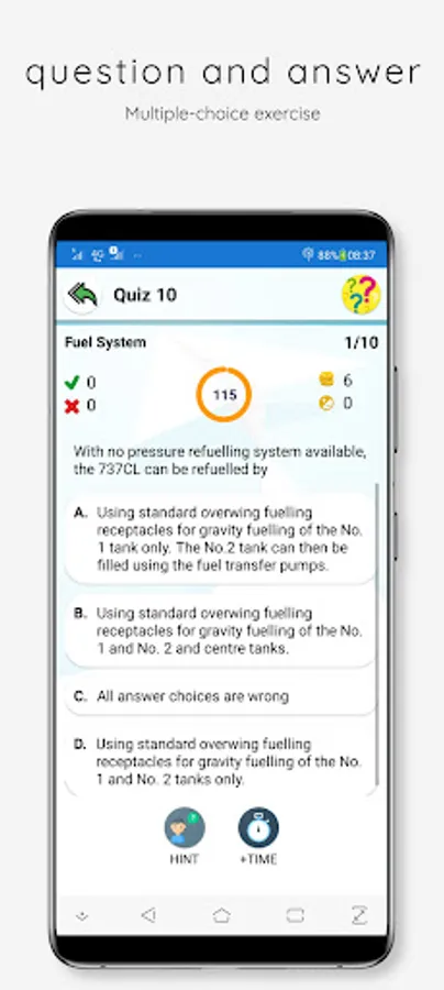 - There are 2 hints (HINT/Knowledge, Add TIME for answering), that can be used