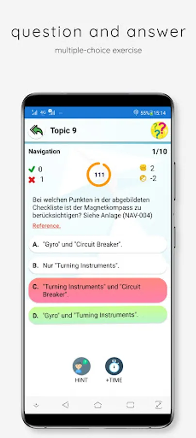 - There are 2 hints (Hint/Knowledge, Add TIME for answering), that can be used
