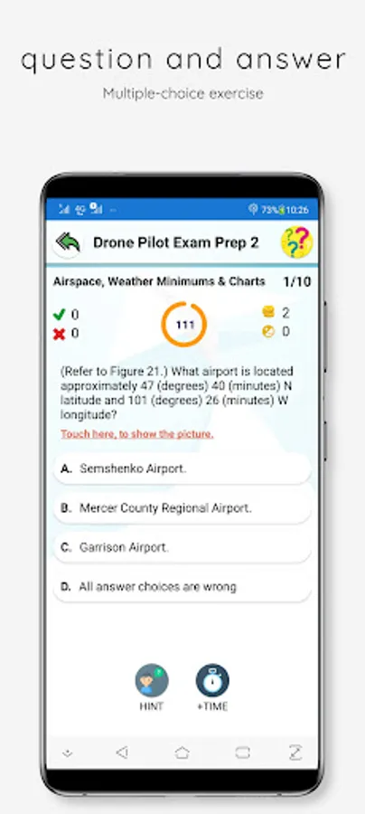 - There are 2 hints (HINT, Add TIME for answering), that can be used
