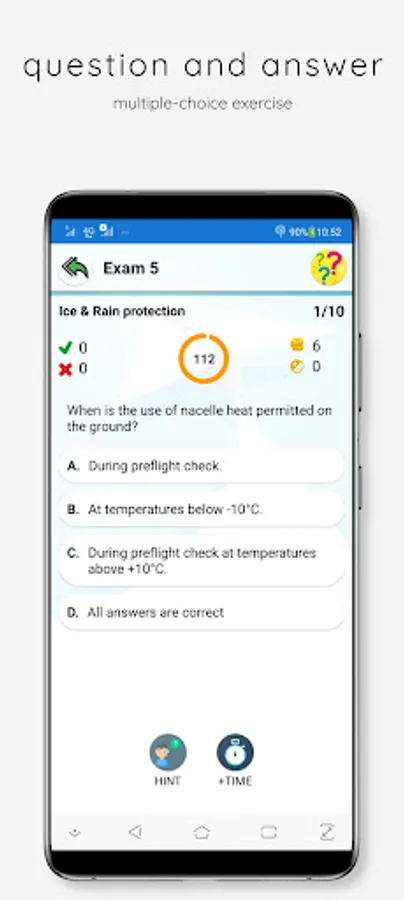 - There are 2 hints (HINT, Add TIME for answering), that can be used