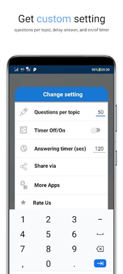 - Setting for the total number of questions that will appear per topic/ exam, the actual number of questions will be selected by the system if it is less than what has been set.