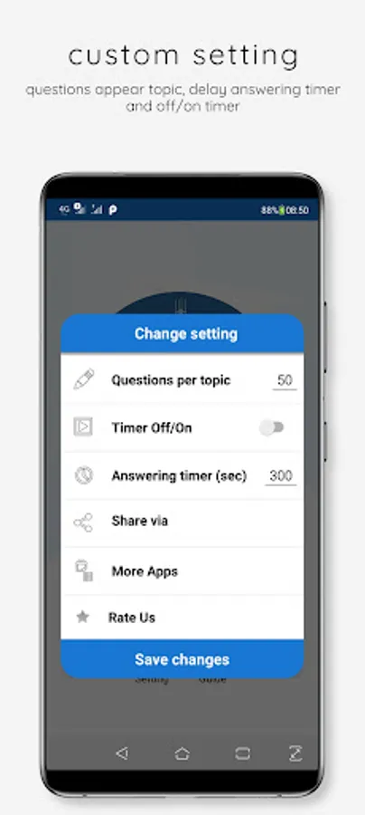 - Setting for the total number of questions that will appear per topic/ exam, the actual number of questions will be selected by the system if it is less than what has been set.