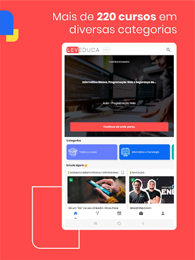 LEVEDUCA is the fastest way to your professional success. Learn with recognized tutors through an intuitive platform, whenever and wherever you want. Online courses with certificate, developed with modern resources and methodologies, for you to become an outstanding professional.