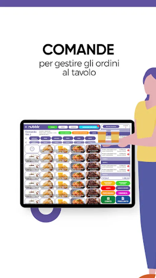 Con Nubble Food puoi gestire la tua attività, che sia un'attività di ristorazione o fast food, gestire i tavoli le comande le prenotazioni. L'app è predisposta per funzionare con i maggiori produttori di stampanti fiscali e non (tutte le compatibilità sono presenti sul nostro sito web). L'app è un modulo aggiuntivo del piano Business Enterprise, scopri tutti i dettagli del mondo Nubble sul nostro sito web.