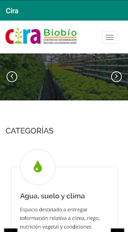www.cirabiobio.cl, is a platform designed to transform into a bridge of connection and interaction between the different actors linked to rural extension services (technicians, professionals, researchers, managers of rural development departments) and a unit of specialists that collect the technical questions and questions to try to solve them through different services that will be offered, delivering online technical, economic, financial, regulatory, environmental, institutional information (public promotion contests) or others.