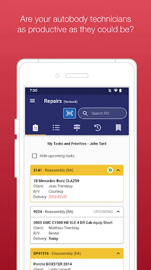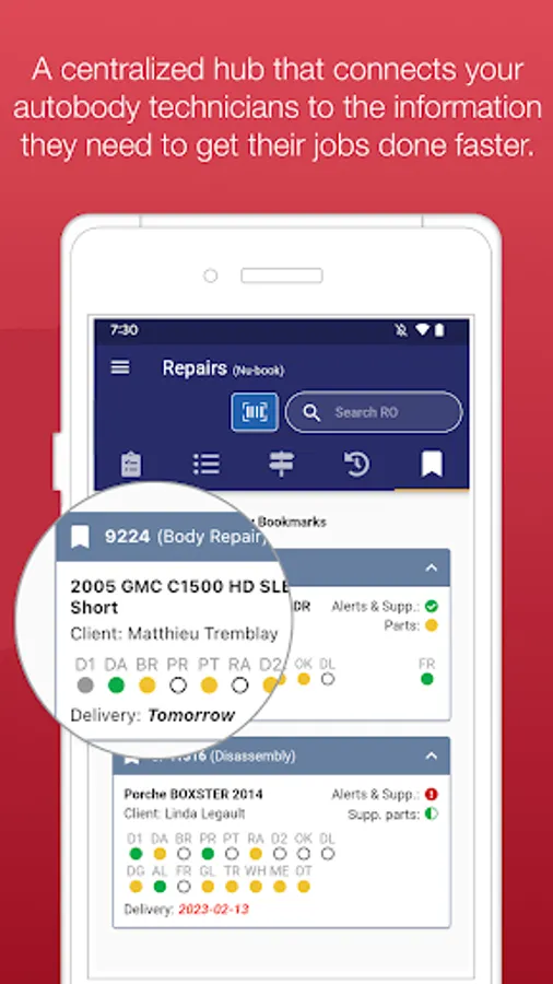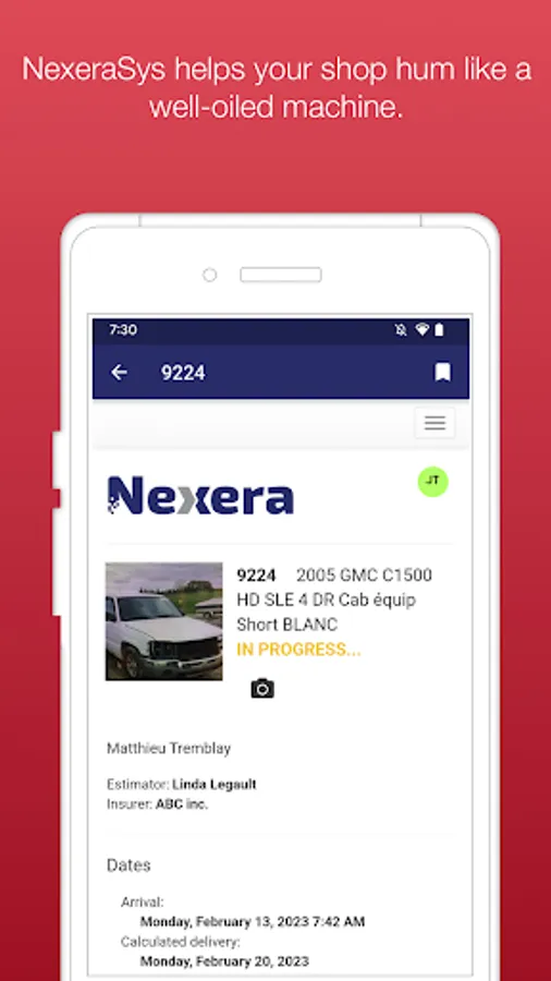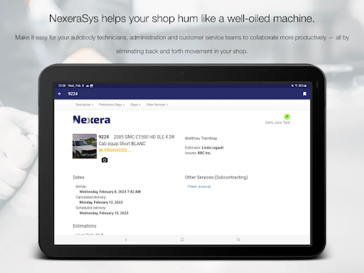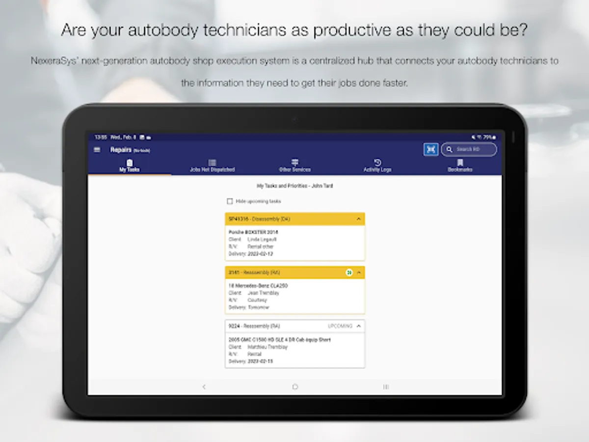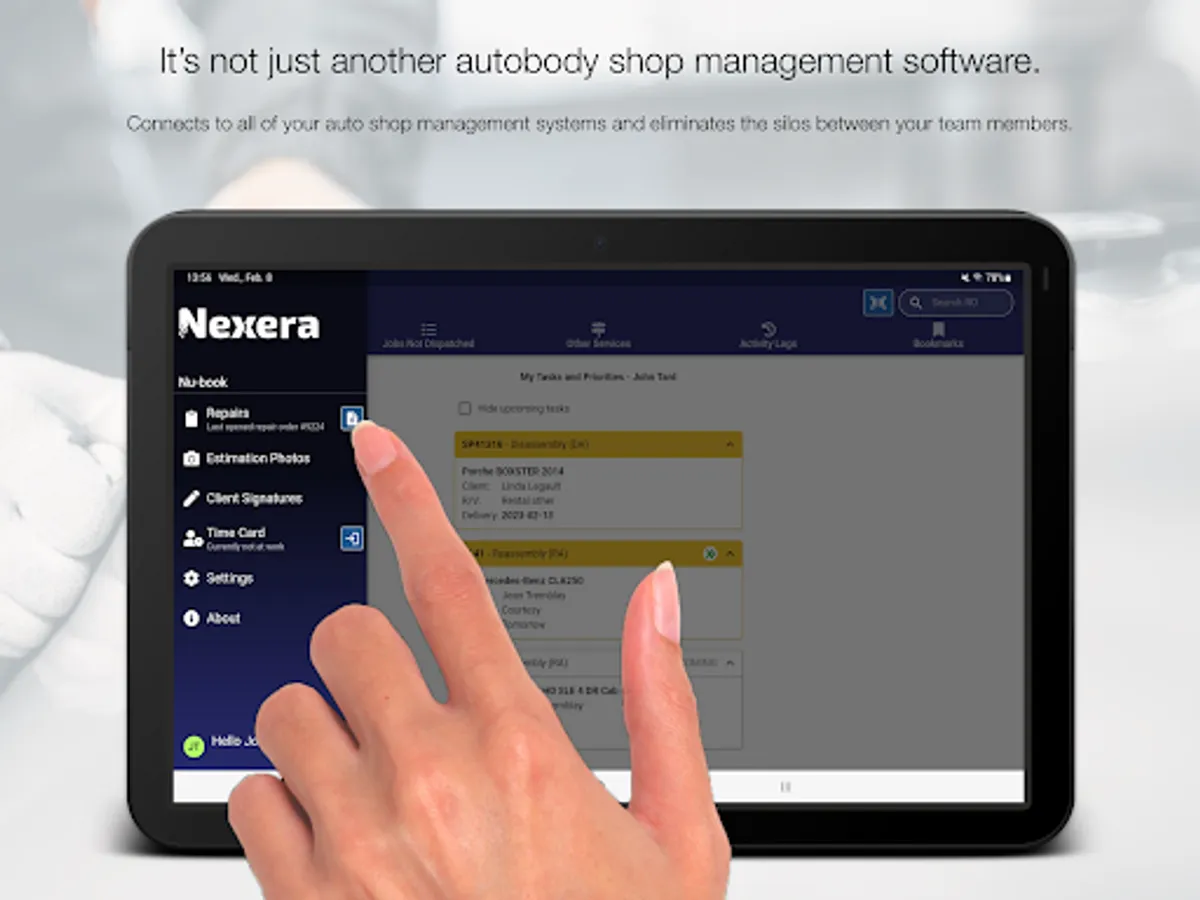 Paired with your Nexera Body Shop System, the Nexera mobile app is tailored for the paperless production tracking of your auto body shop.