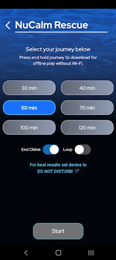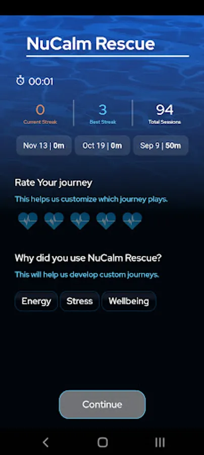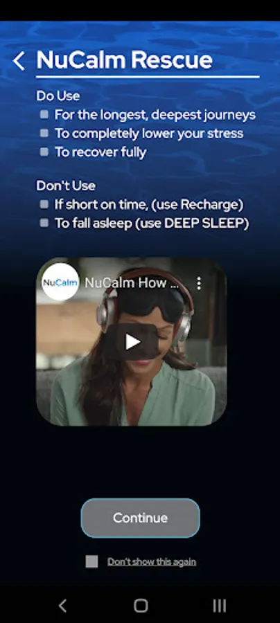 NuCalm offers six different channels that cover the entire spectrum of brain wave frequencies. Each channel provides a different outcome and features a variety of neuroacoustic journeys with various lengths, from fourteen minutes to two hours. The DeepSleep channel features relaxing music and sound design overlayed on top of the neuroacoustic software to help you fall into deep sleep faster without drugs or side effects. The Rescue channel helps you free yourself from stress completely and improve your sleep quality with the world's first and only patented technology clinically proven to solve stress at its source in the midbrain. The FlowState channel optimizes your creativity, sense of calm, and feeling of deep relaxation , body and mind. The PowerNap channel is a concentrated recovery journey that helps you re-energize and unlock the full potential of your mind and body in just twenty minutes. The Focus channel clears your mind and helps you say goodbye to distractions, confusion, and procrastination, allowing for greater clarity, concentration and comprehension. The Ignite channel elevates your mental and physical state in minutes, providing your fastest, all-natural path to the state of peak performance, mind and body.