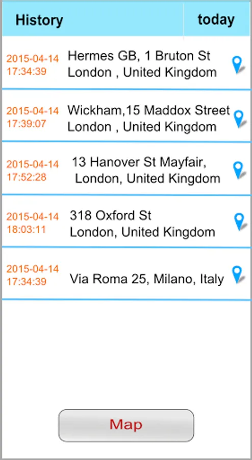 - Check the routes with History button