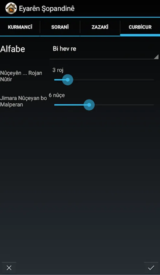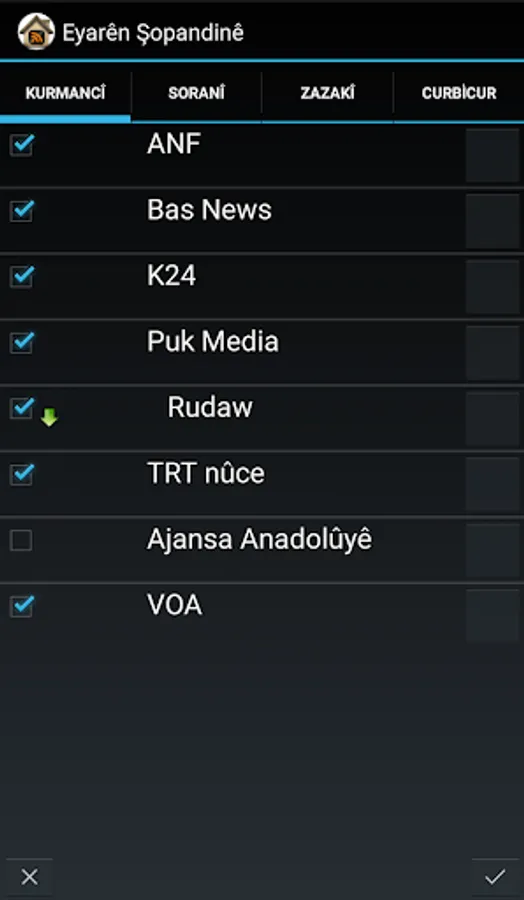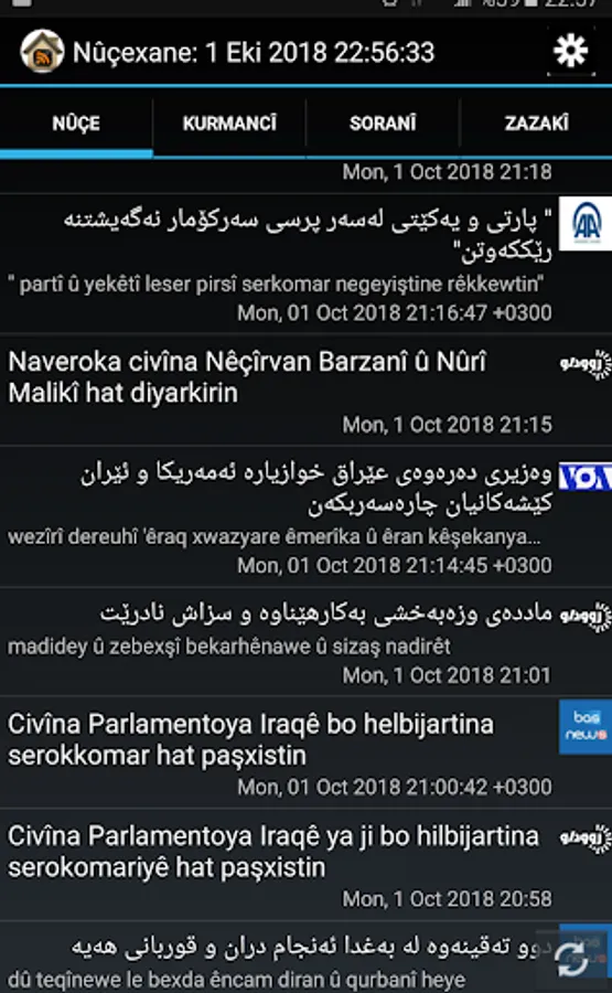 This is an app for following Kurdish news. Websites in Kurmancî, Soranî and Zazakî are available on app forvisiting. Also via RSS feed, of course if available, they can be followed on app. without visiting website