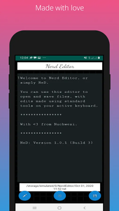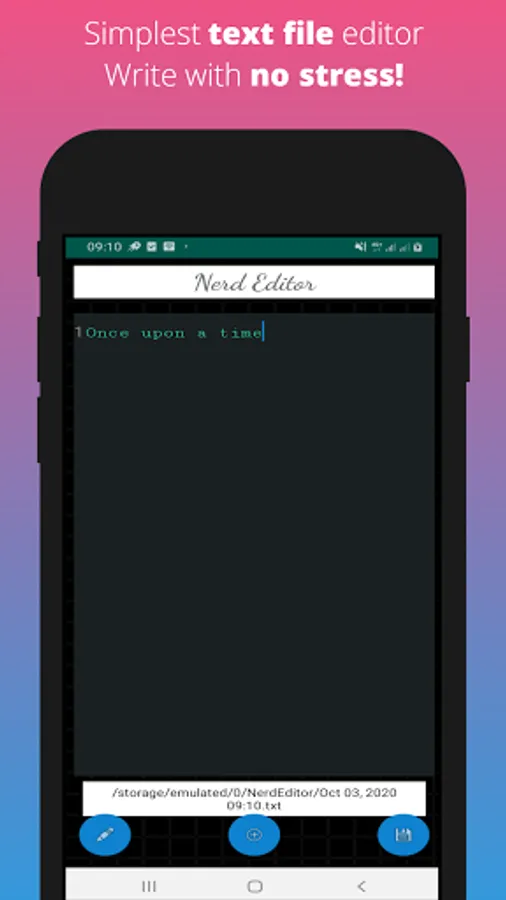 Nerd Editor is the best of the simple file editors you can find for your phone. It can be used to create new files or edit existing files with little or no hustle. It has an in-built data recovery mechanism so that loosing data while you are editing a new file (or existing one) is impossible, even if the app closes, crashes or you restart the phone. It shows line numbers as you edit, and comes with a clean, uncluttered interface to help you focus while you write.