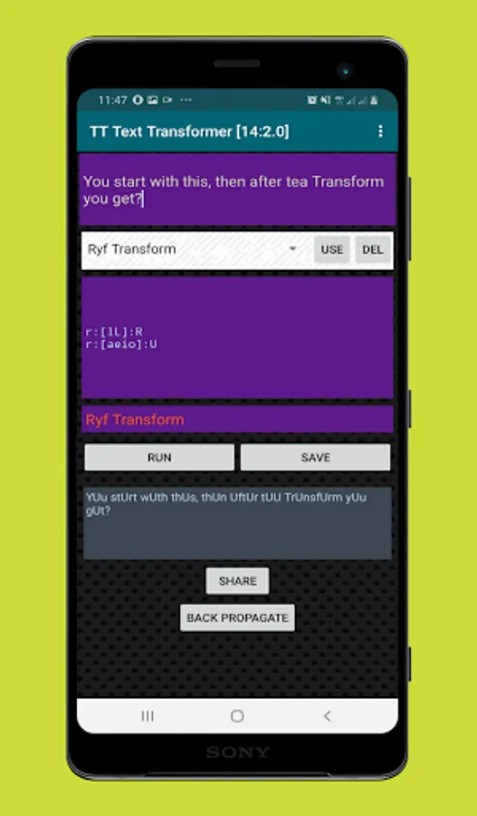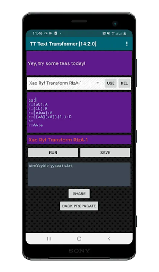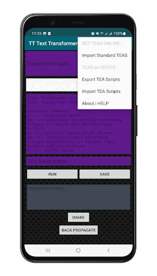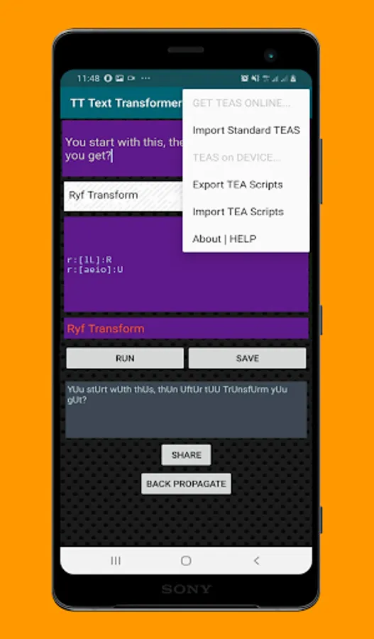 TTTT uses a kind of simple programming language called TEA Script, where TEA is TExt Alternator. You could take boring words like "Hello" and make from them stuff like "Carro", "Herra", "Geta", etc.