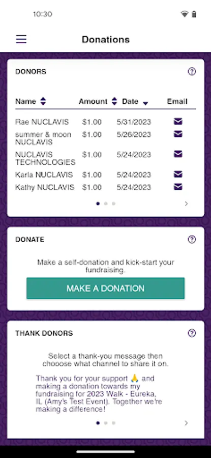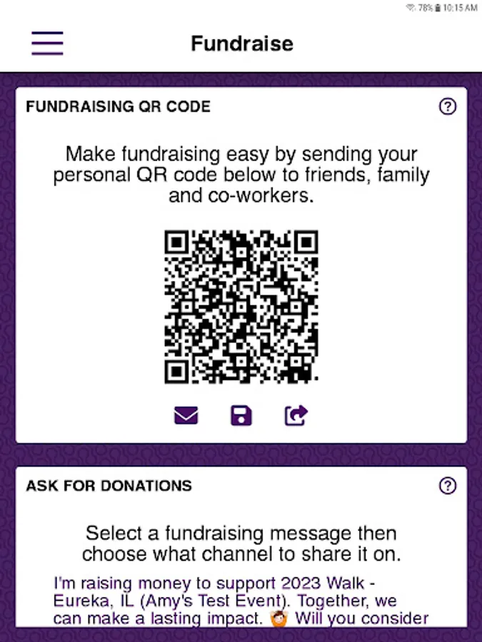 Do your fundraising on the go with your The Alzheimer's Events application. With this mobile app, you can send fundraising emails and texts, post progress updates on social media and deposit check donations.
