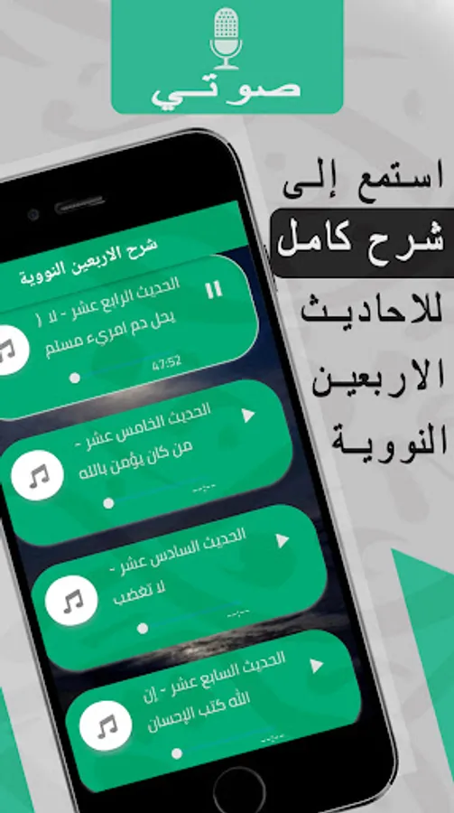 The application contains an explanation of all the forty nuclear hadiths explained in a smooth and not boring way..