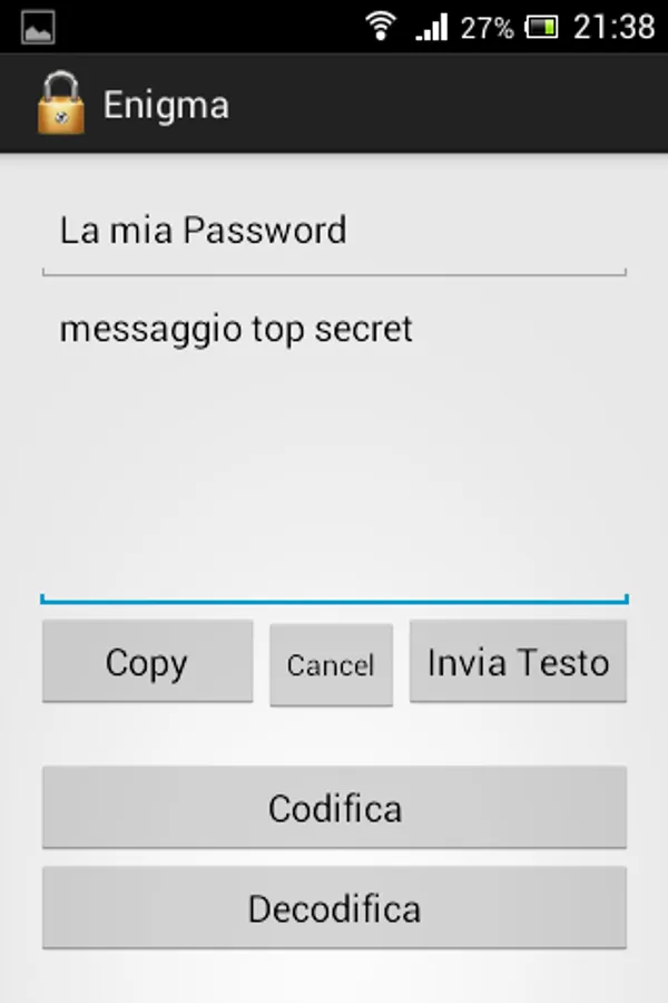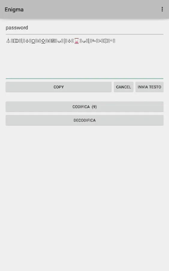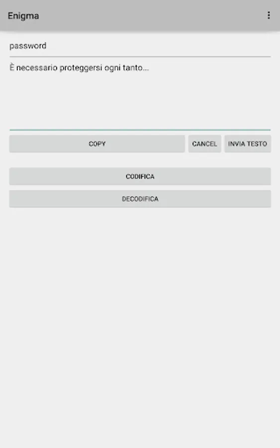 Enigma allows you to encode, decode and send all the messages you think should be protected.