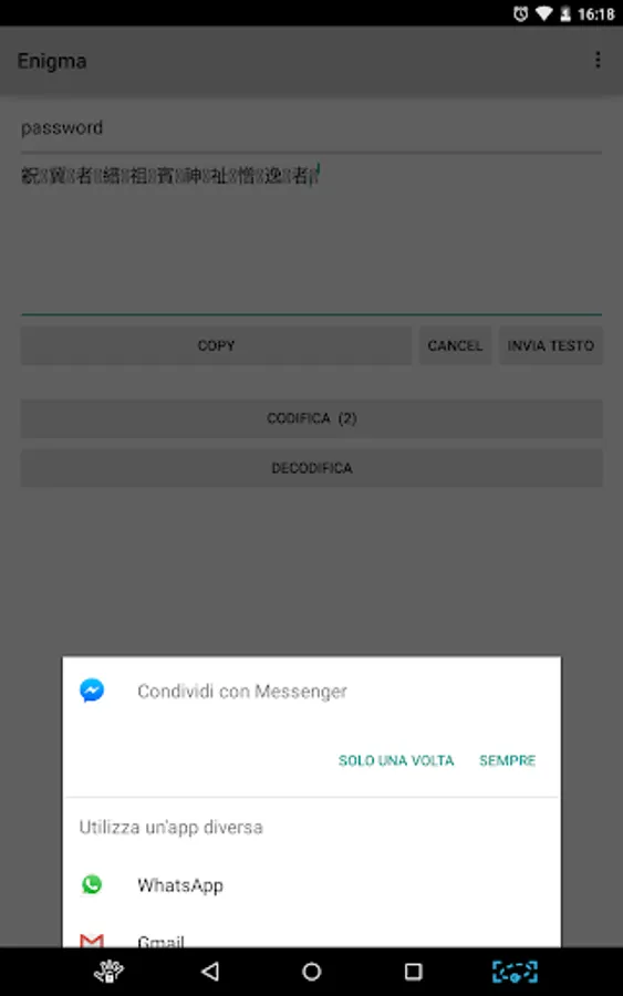 ->Copy and Paste where you want, or press Invia Testo to send it with an external app ;)