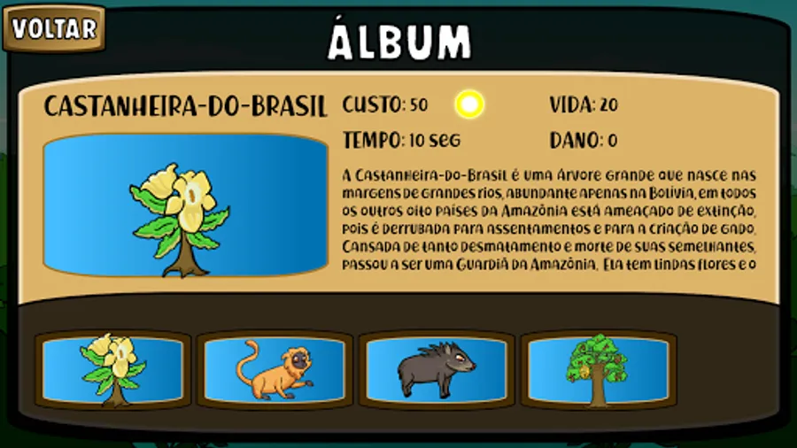 Tower Defense, where the player defends the forest, controlling fauna, flora and myths, against the onslaught of hunters, agrochemicals and arsonists who want to deforest and explore the Amazon rainforest!