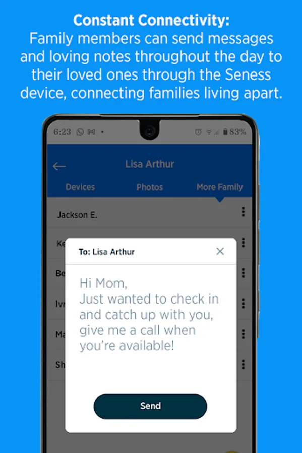 The Seness Family app allows family members to connect with patients using NucleusCare services. Currently, the app can: