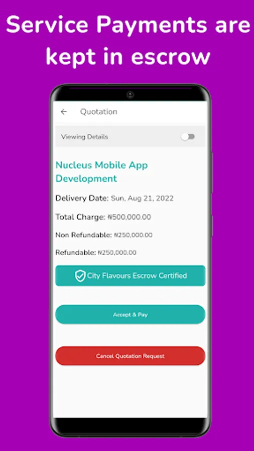 Service payments are held in escrow until services are completed, meaning you never have to worry about paying for a service ahead of time and not having the provider deliver.