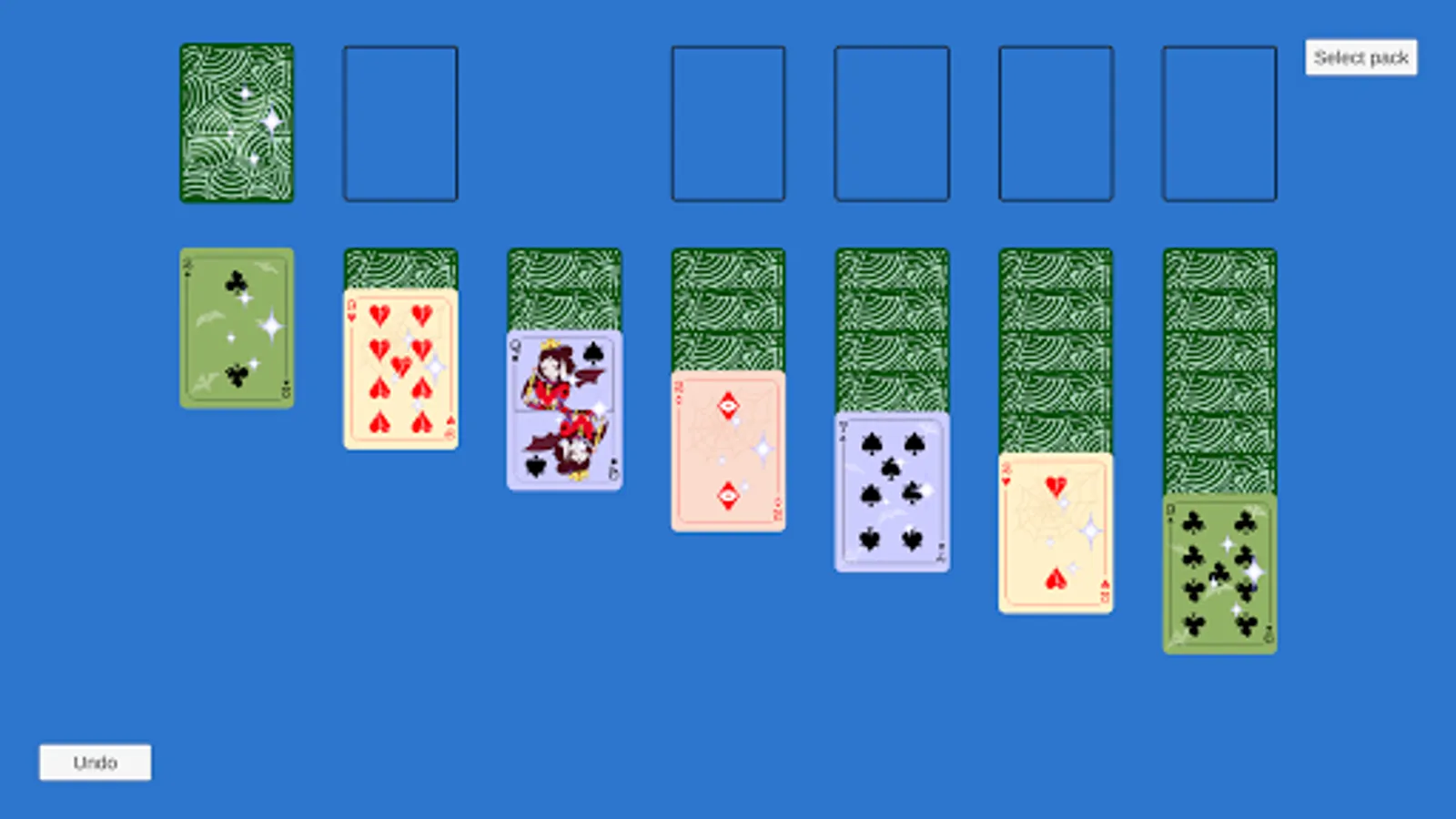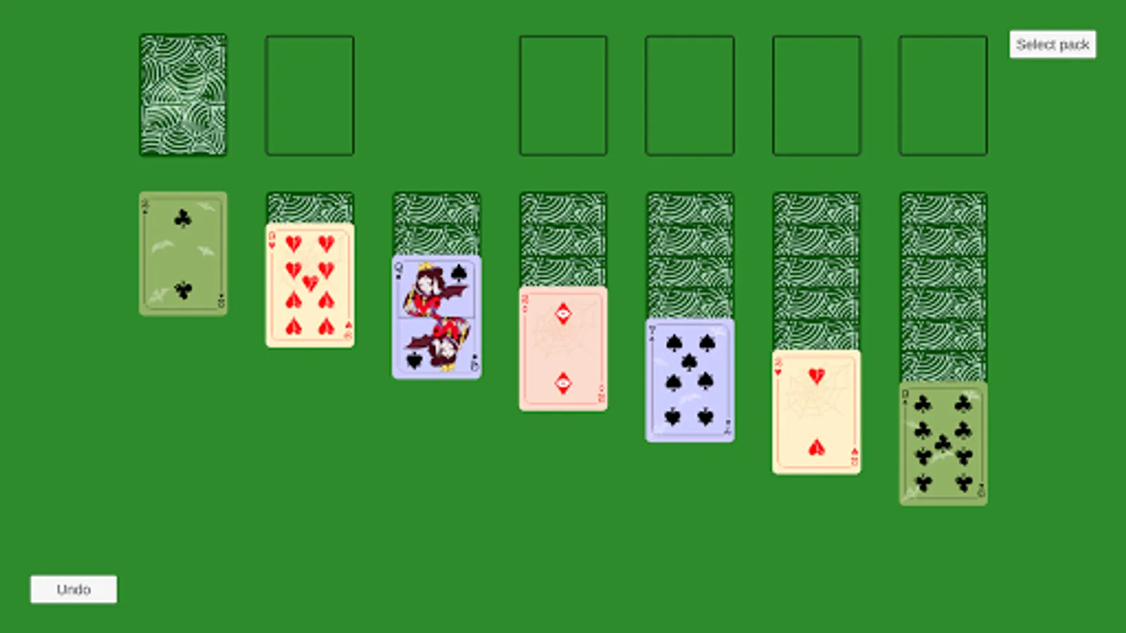 Classic solitaire with Halloween-themed cards.