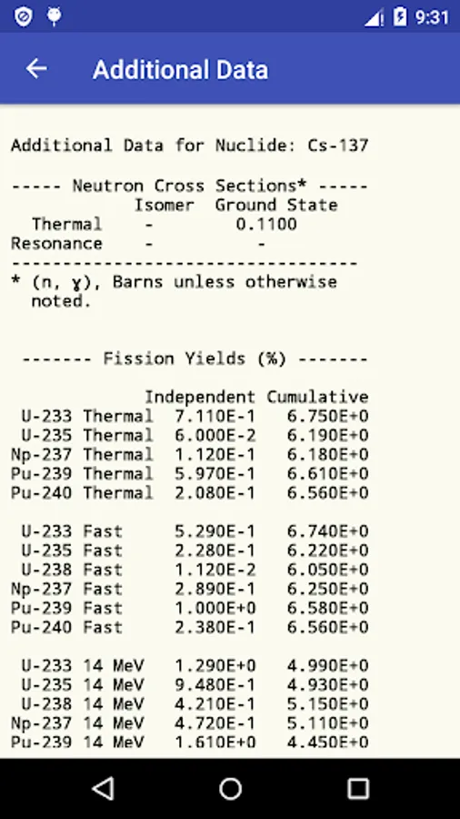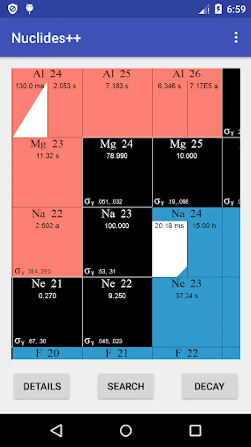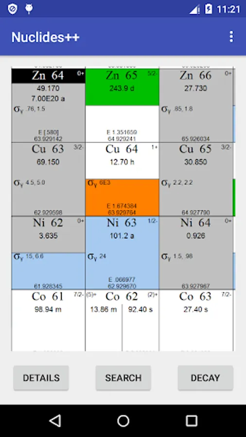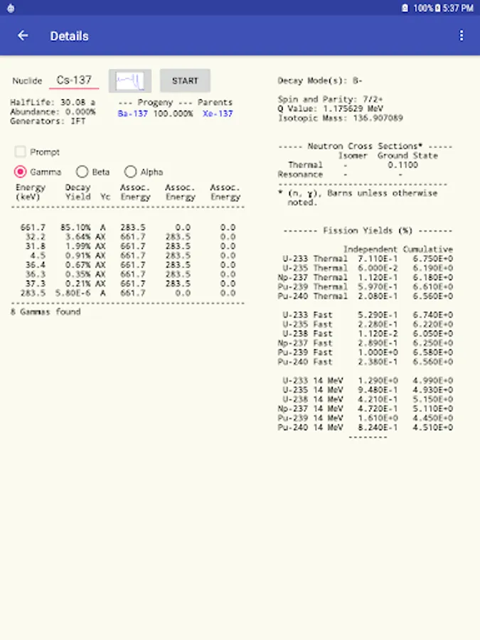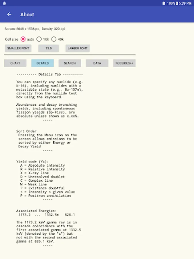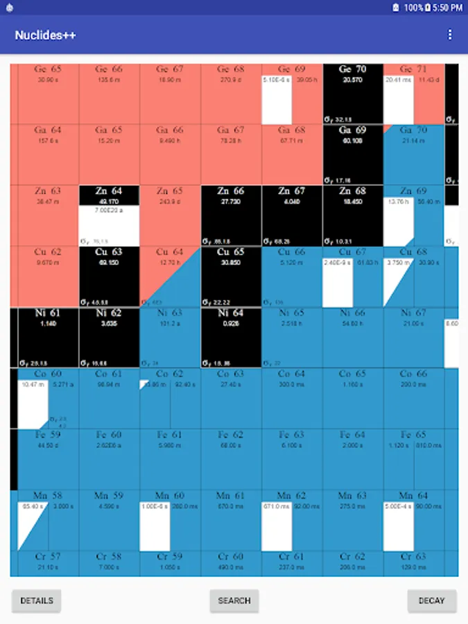 Nuclides++ is an interactive Chart of the Nuclides for tablets and phones that is powered by an embedded database derived from the NNDC NuDat 2.6 compilation for the display of atomic and nuclear data + emissions data + synthesized emissions spectra