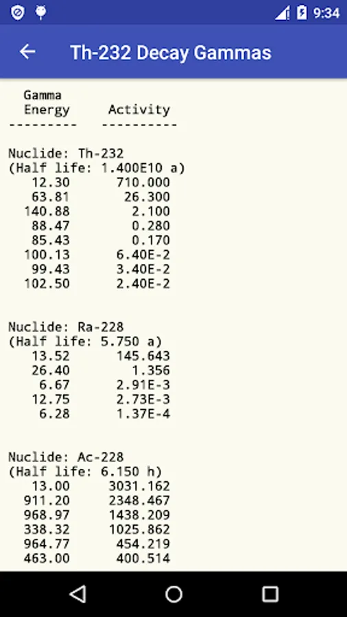 ● Beta and Alpha particles; - parent nuclide or isomer, energy, and yield