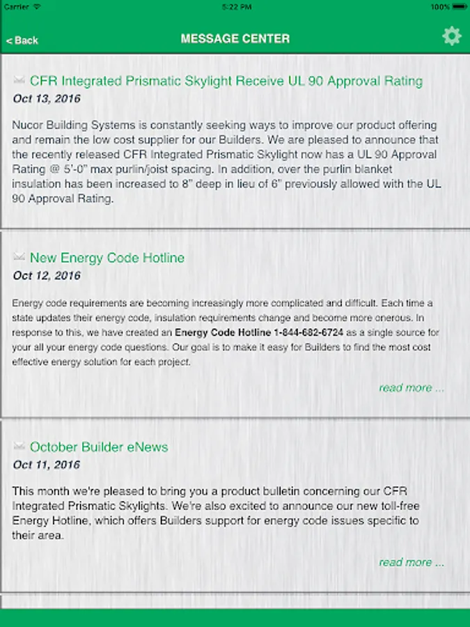 The Nucor Building Systems Mobile Toolbox is the all-in-one app for resources and references for your steel building projects. Exclusive to Authorized Nucor Builders, tools such as eQuote and Steel Store are just a click away with the integrated single-sign-on, and you can stay up to date with messages and product bulletins.
