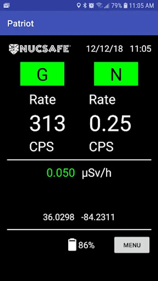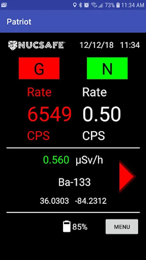 Mobile device application for Nucsafe Portable, Mobile and Personal Spectroscopic Radiation Detection (SPRD) Instruments. Android App works with Nucsafe Inc's Portable PRST-Briefcase radiation detection systems, Surveyor and Patriot radiation detection backpacks as well as the Mico-Guardian SPRD. Application Provides real-time count rates for gamma, neutron and alpha/beta detectors with user settable thresholds. Indicates Left and Right source direction as well as gamma exposure rates. Provides data logging with breadcrumbs on live maps and allows for spectral display With analysis and Nuclide ID. Data logging and spectral collection can both be shared via Email for reach-back assistance. App requires instrument to have a Nucsafe Bluetooth Smart Sensor connection.