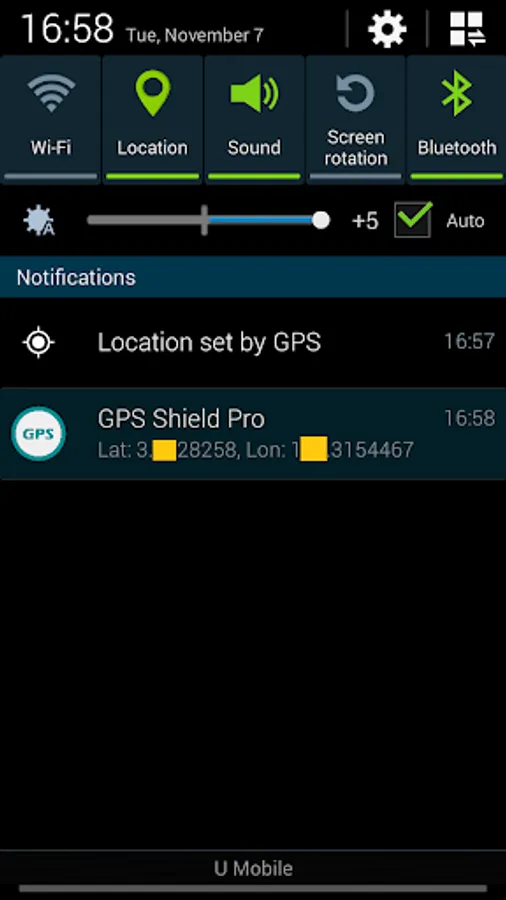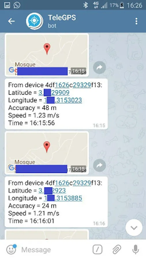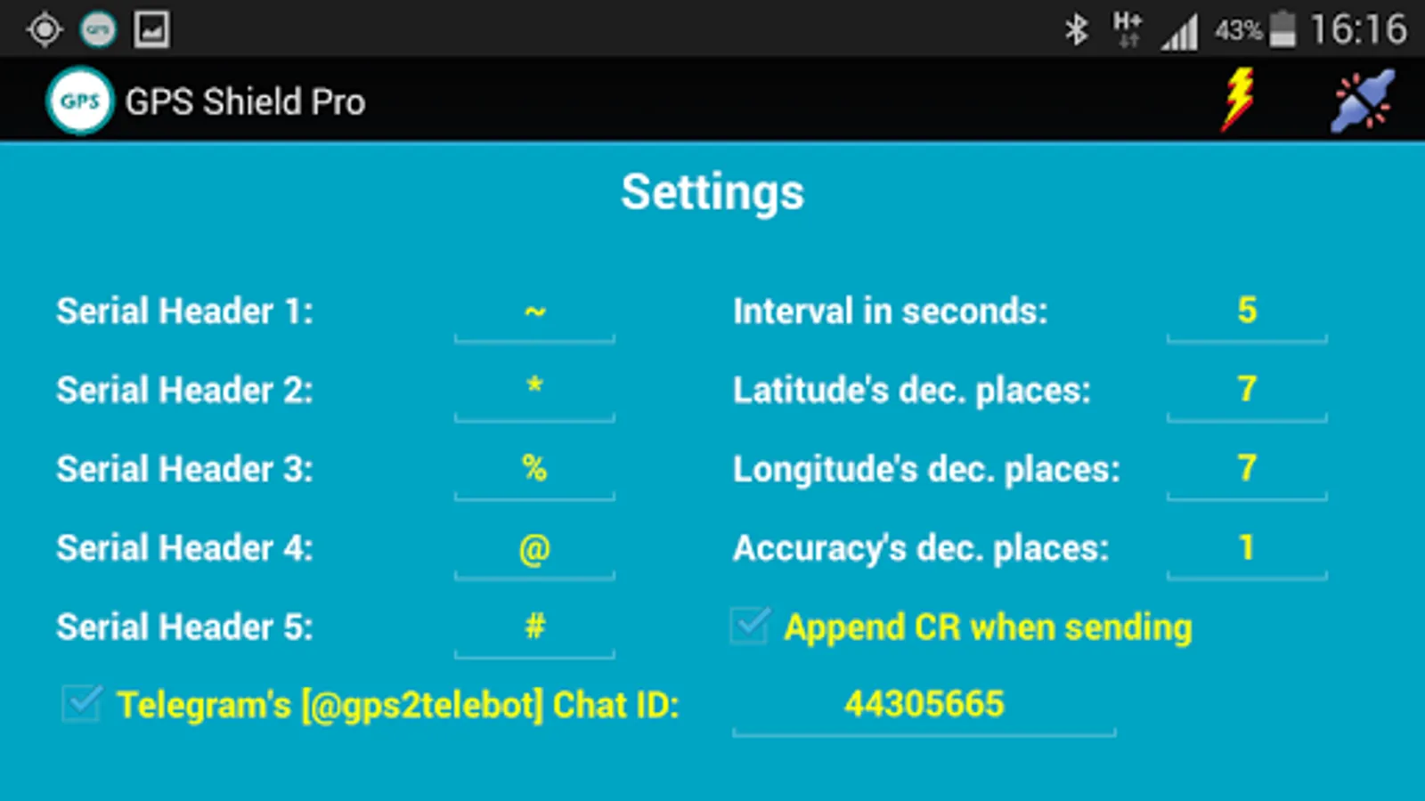 Update: Now you can send the coordinates along some information of your location to Telegram app. Open your Telegram Messenger app, search for "gps2telebot" then Click "START" after selecting the bot. Request your Chat ID from the bot by typing "/myid" and use the Chat ID in this GPS Shield Pro app to receive your current location. Any question please ask me through email.