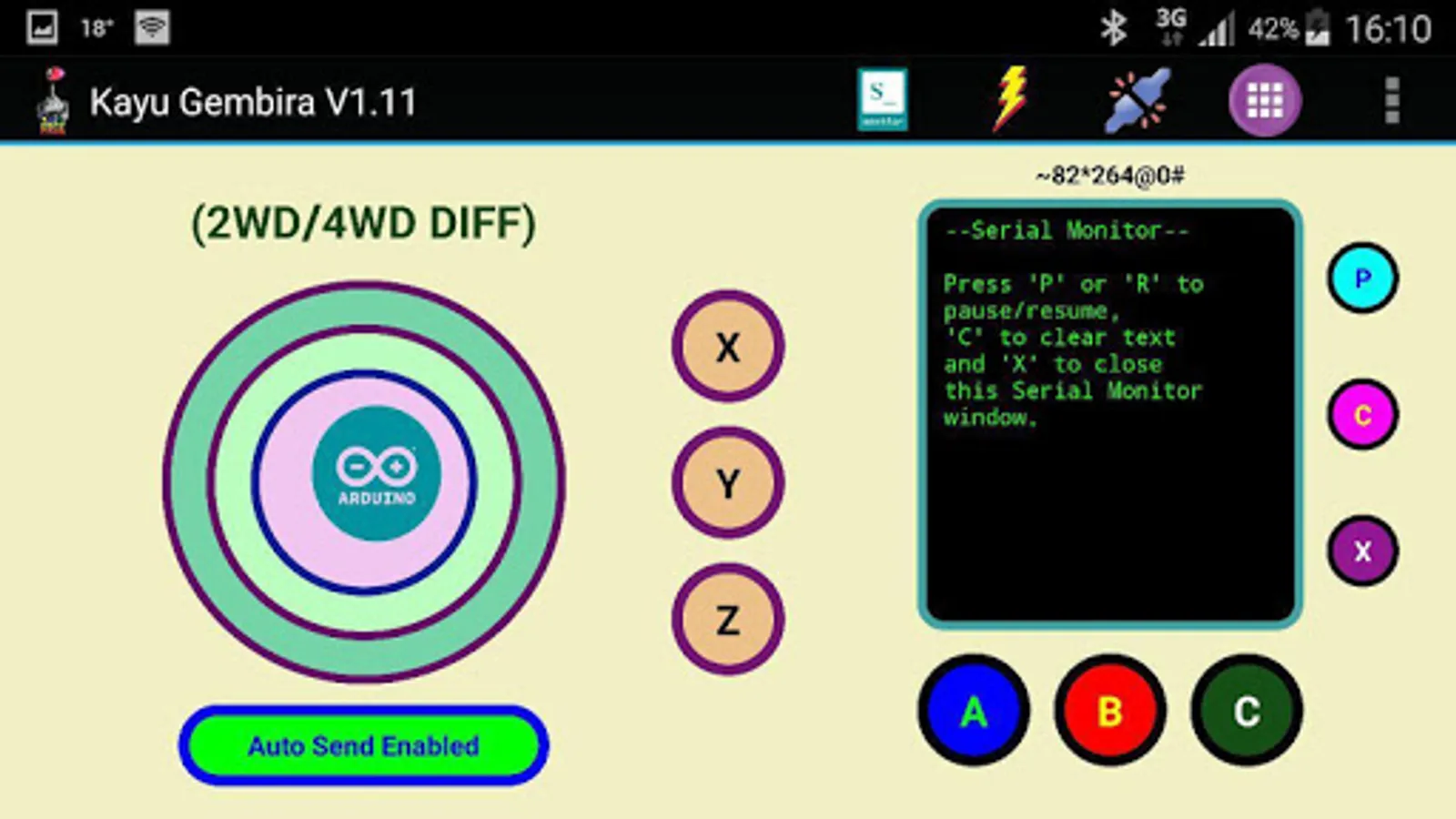 The app now is equipped with Serial Monitor window for your convenience. No need to use Serial Monitor from PC anymore (hence no USB cable needed).