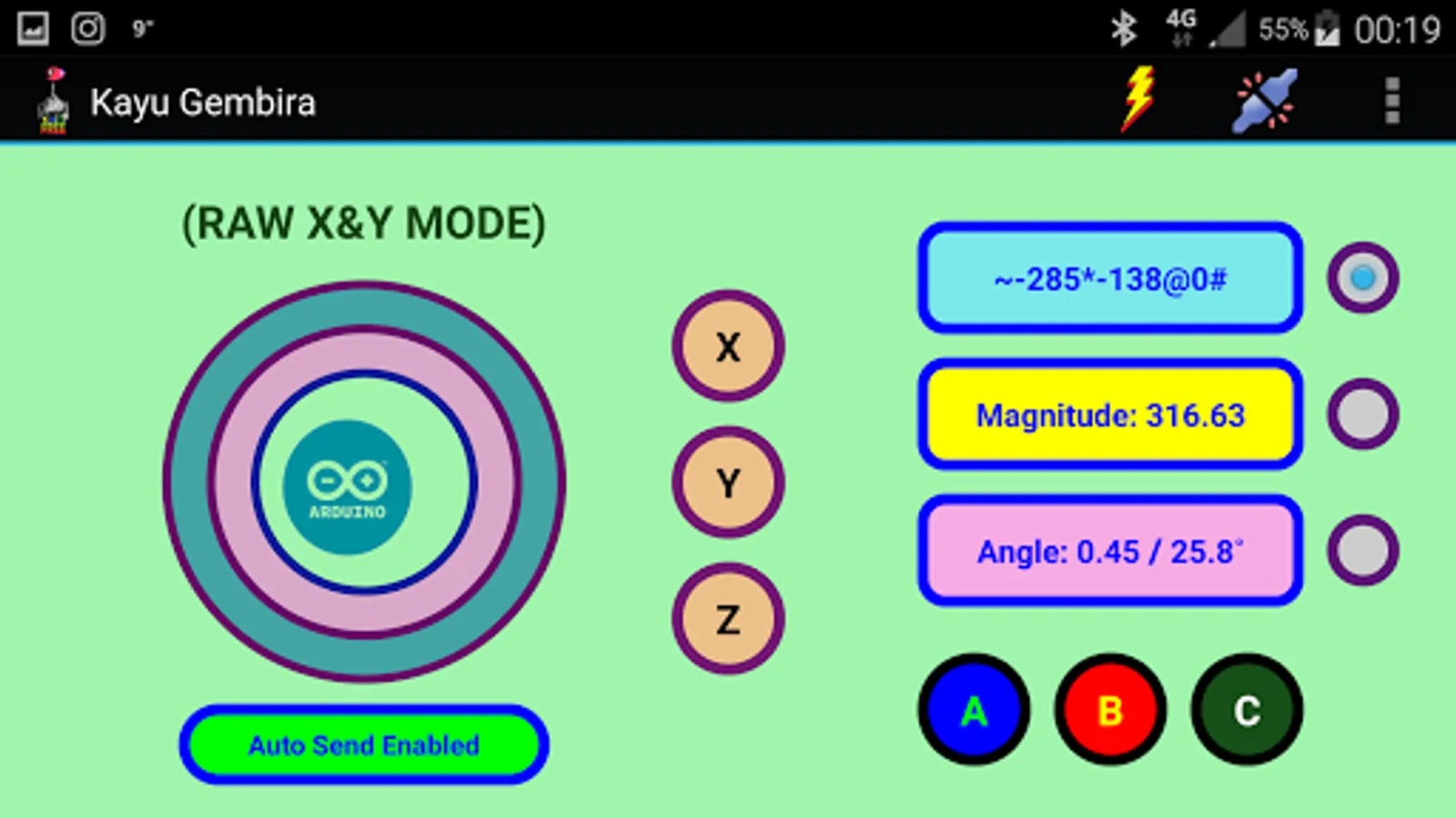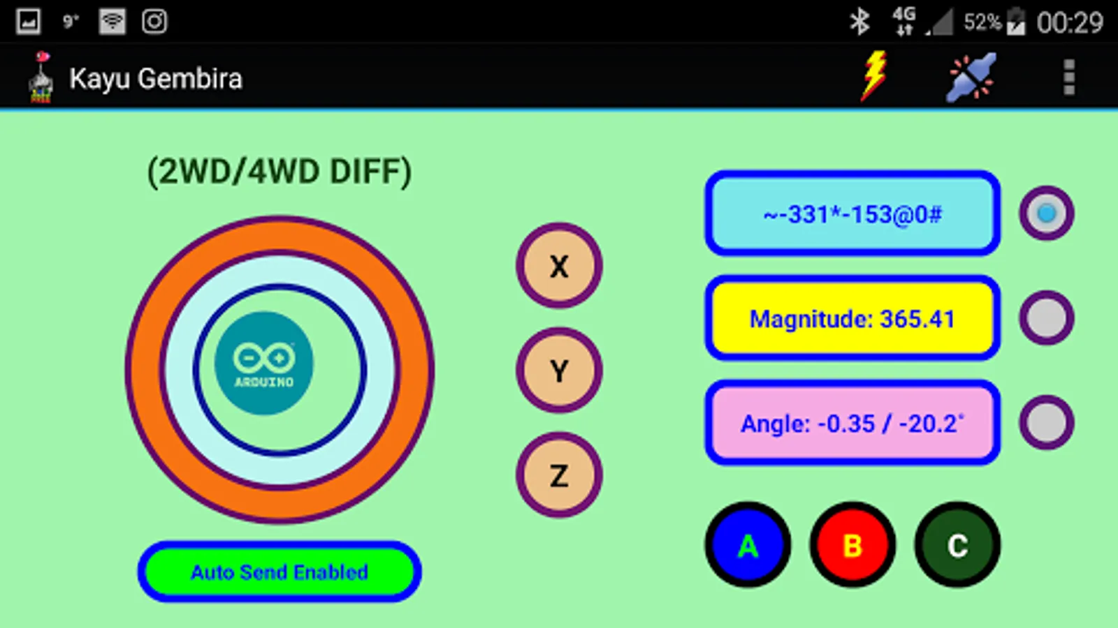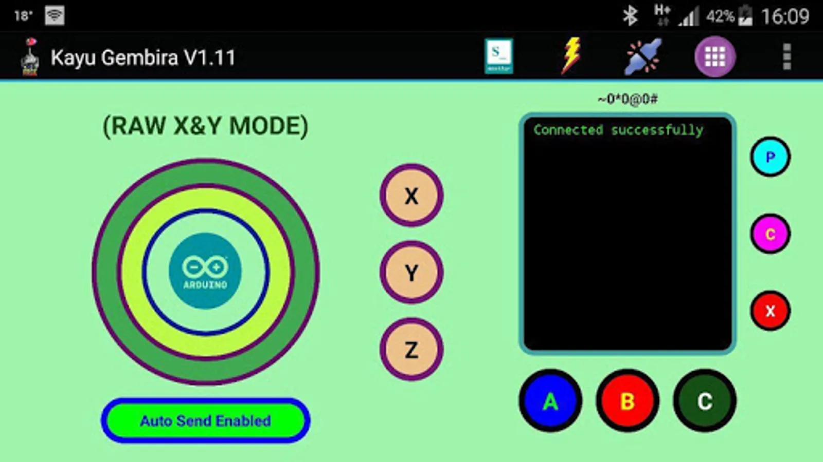 This app is dedicated to be used as joystick interface for Arduino-based (not limited to) robotic application.