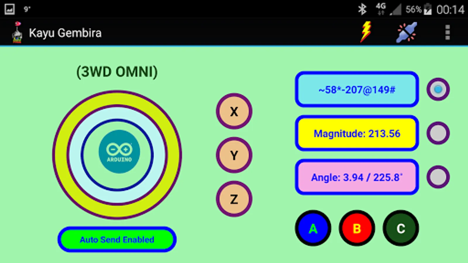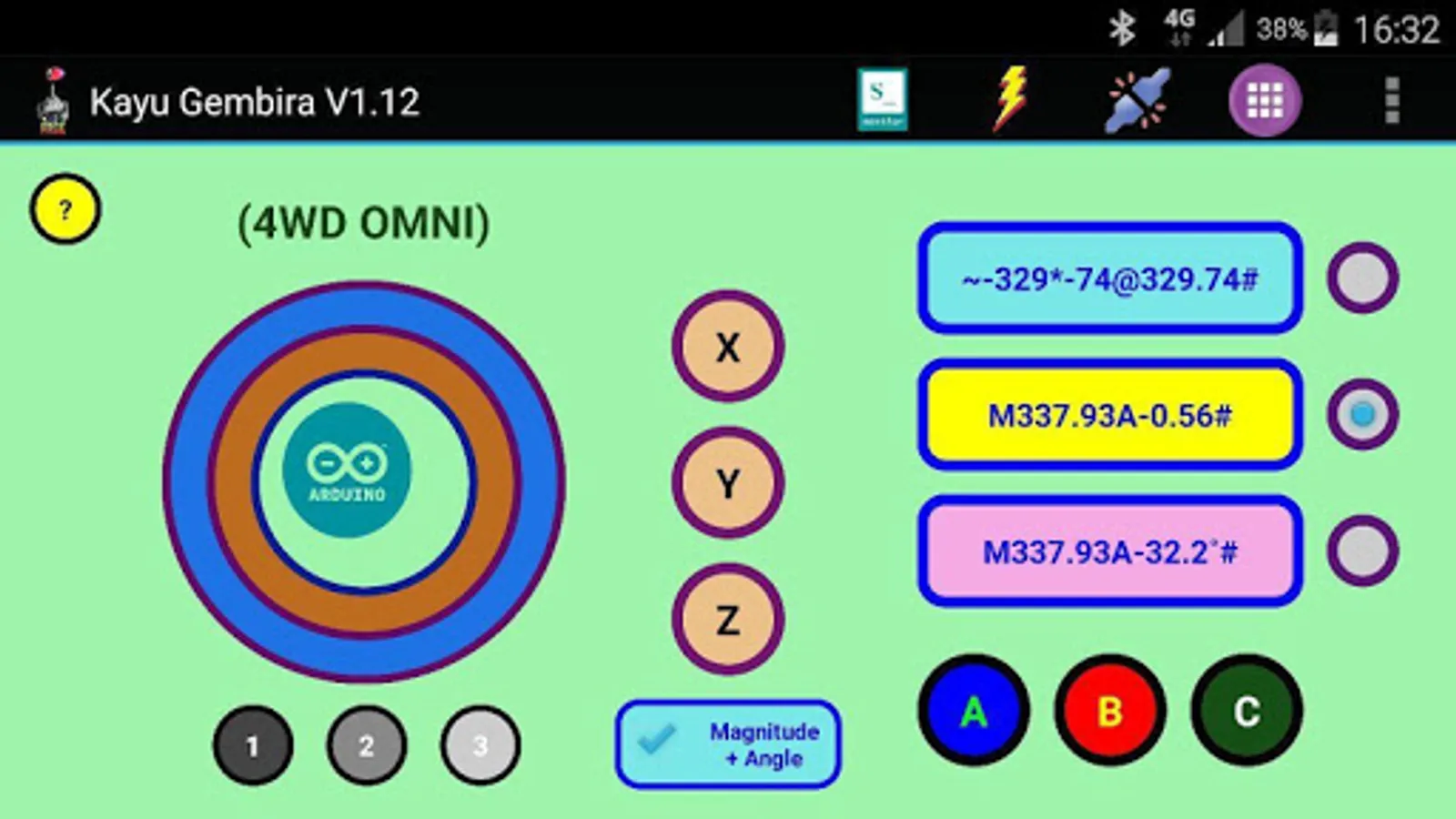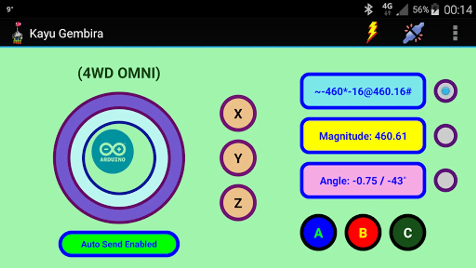 This app is dedicated to be used as joystick interface for Arduino-based (not limited to) robotic application.