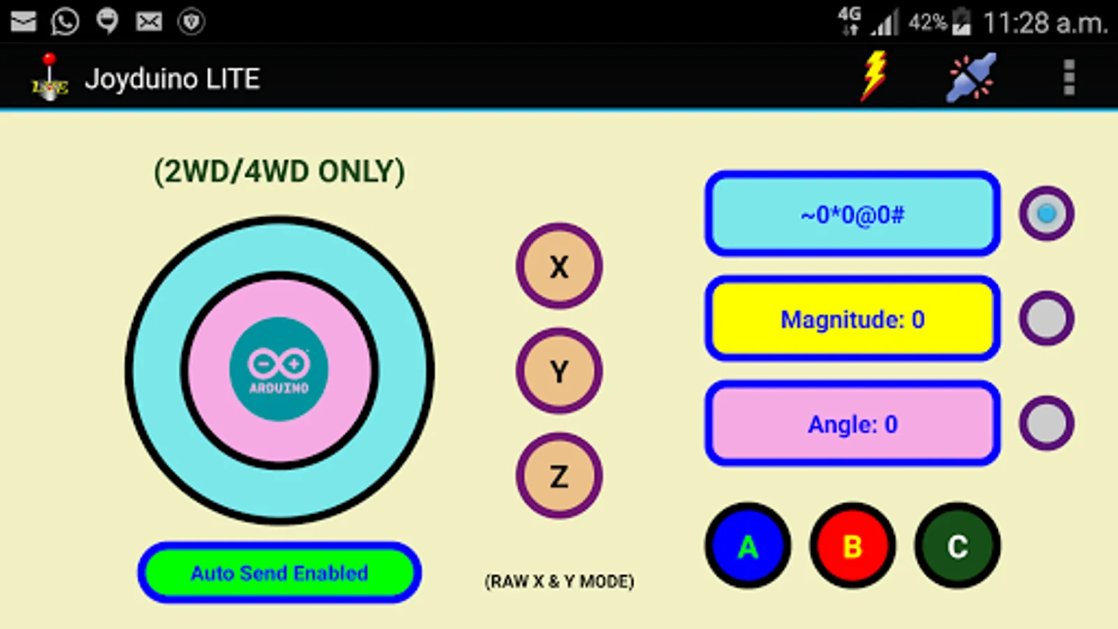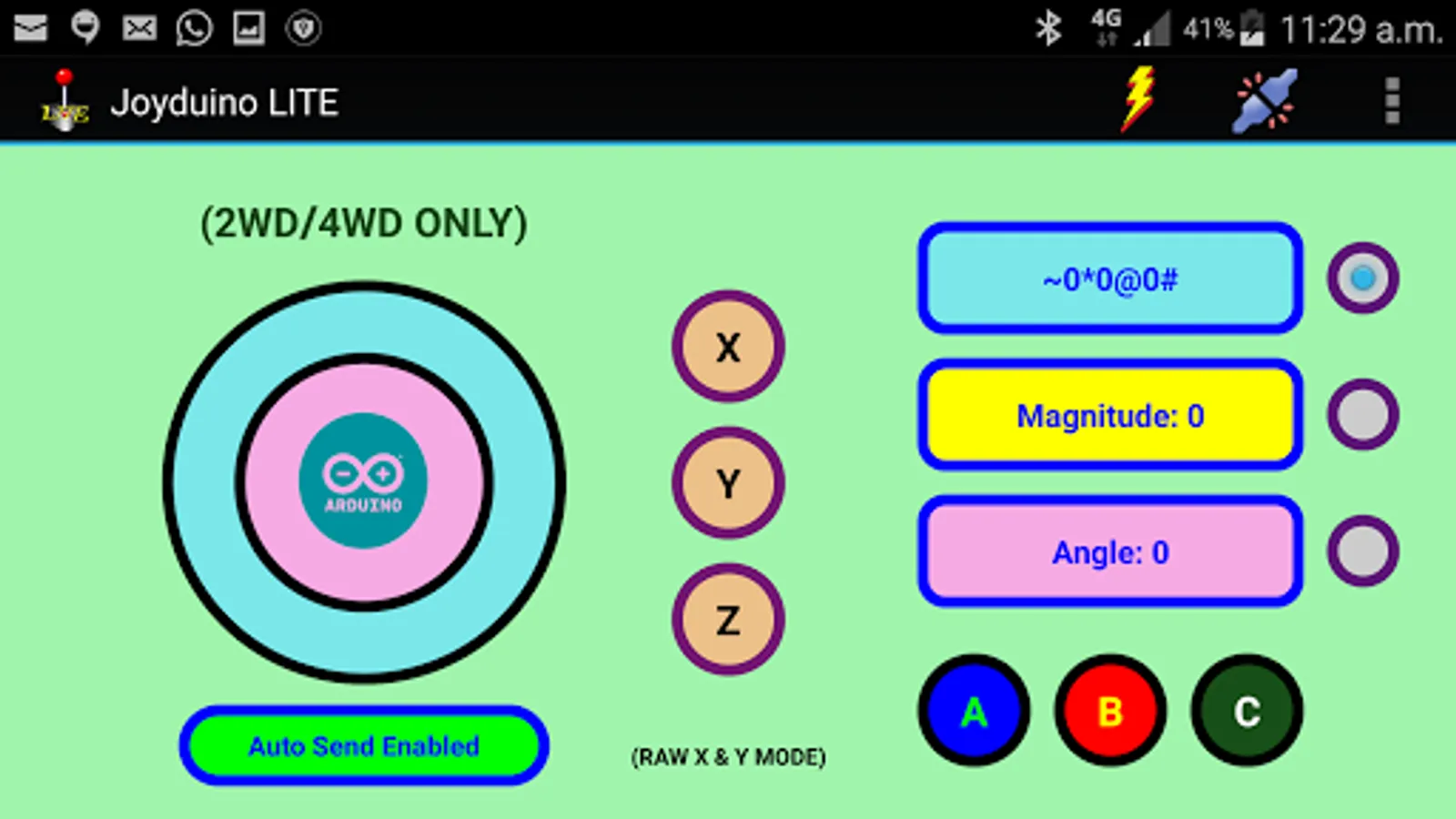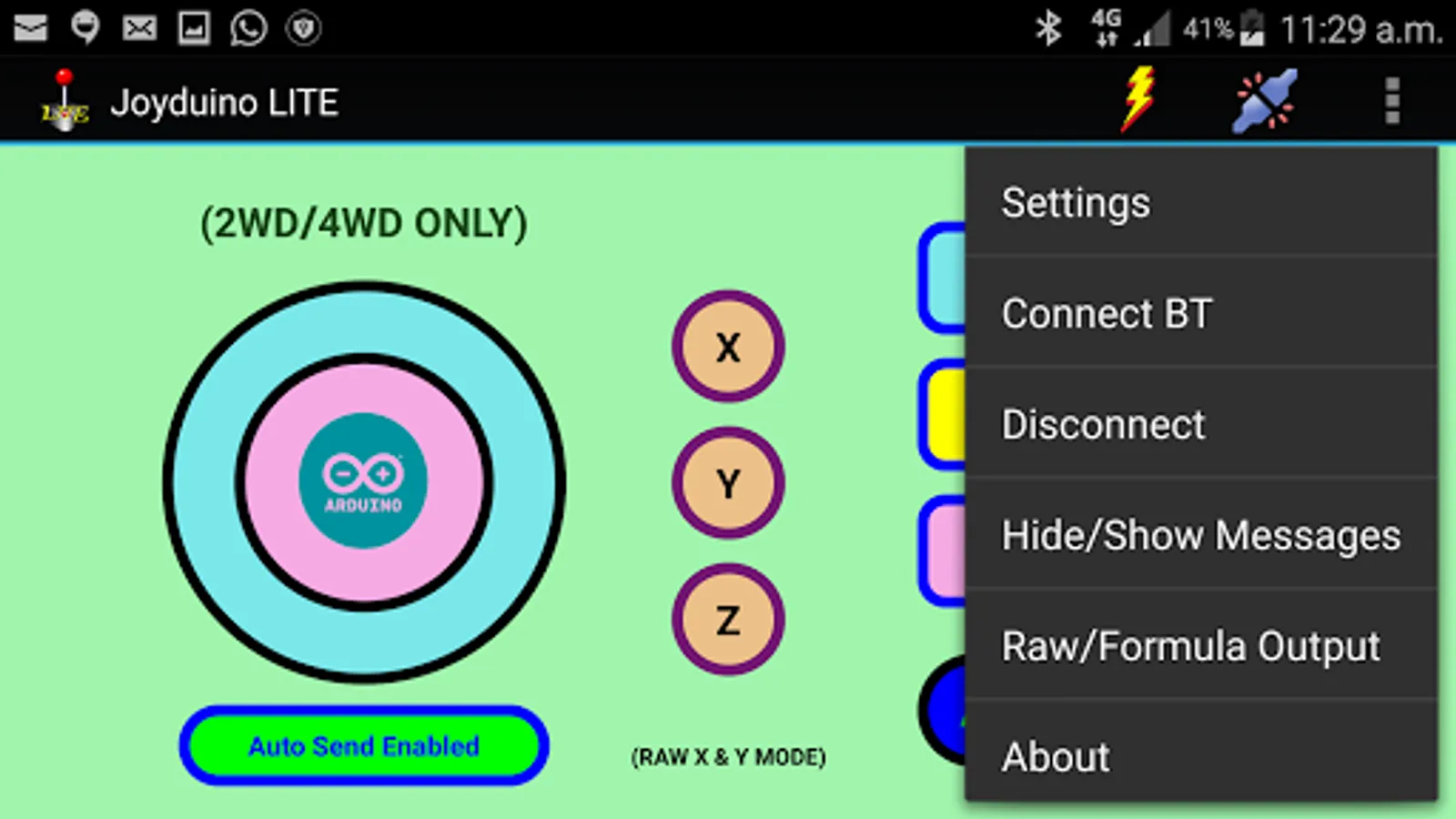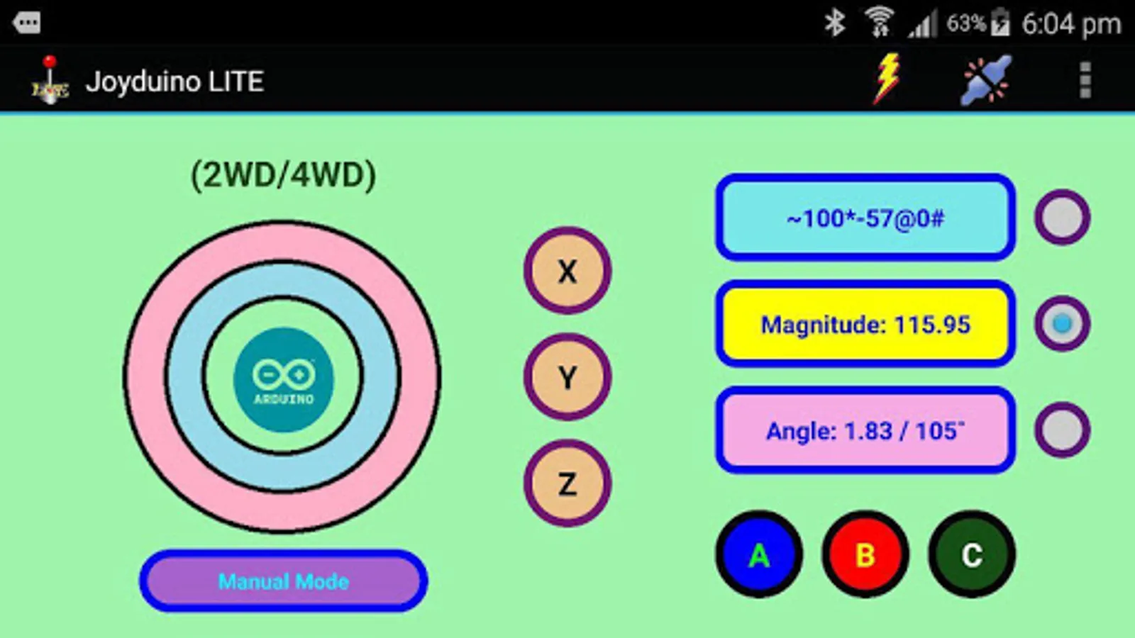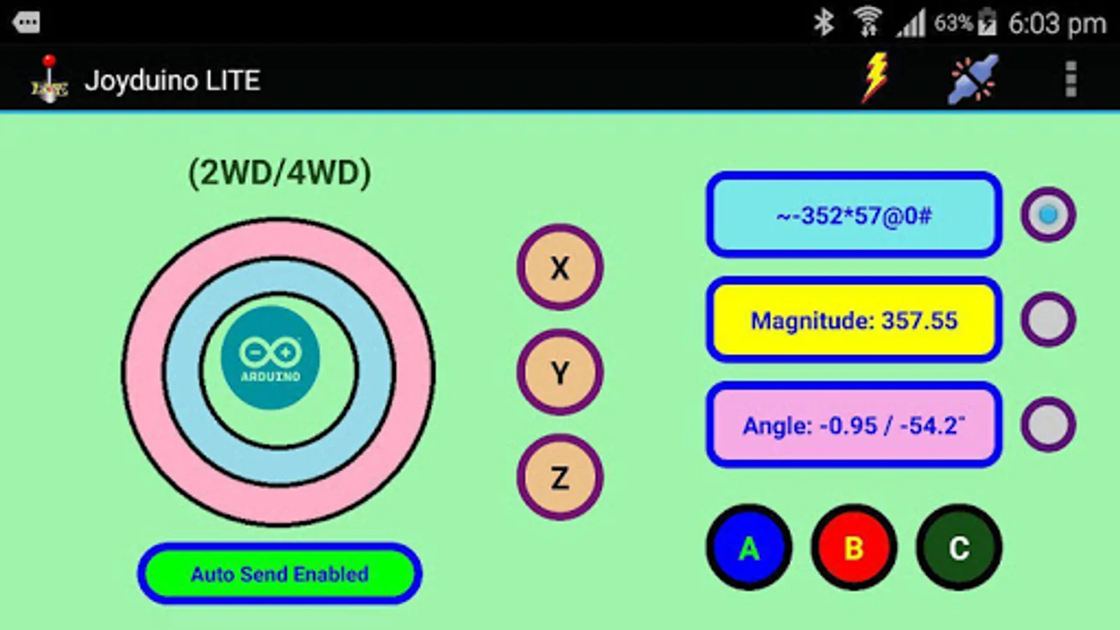 This app is dedicated to be used as joystick interface for Arduino-based (not limited to) robotic application.