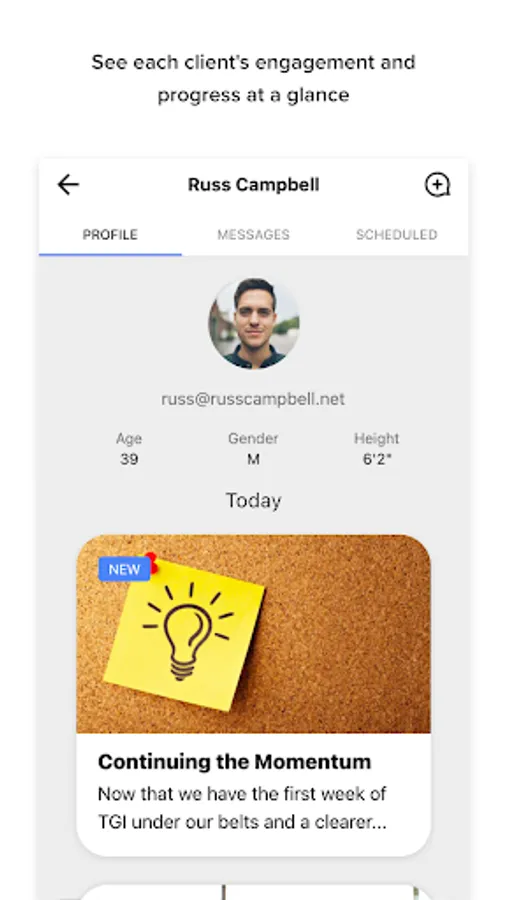 * quickly reference what clients are tracking and highlight their progress on-the-go