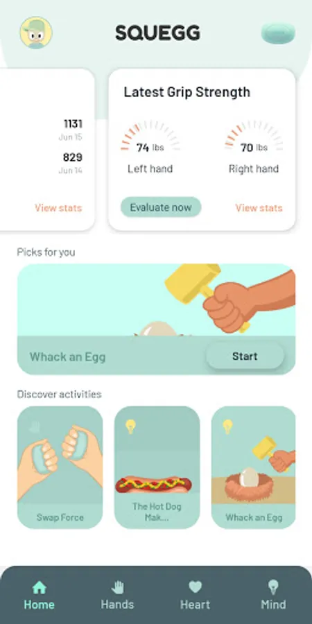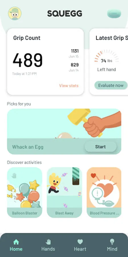 Healthy heart - Keep your blood pressure in check with a 12-minute session of Squegg’s in-app isometric hand exercise. Squegg has gamified the experience of the isometric exercise. All you need to do is go to our blood pressure activity, choose your level and then experience the fun of exercising.