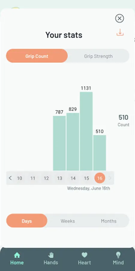 Healthy hands - With Squegg, you can evaluate and keep track of your left and right hand grip strength in a heartbeat. Squegg keeps track of your grip repetitions and allows you to view them through the aesthetic graphs or by downloading them to your phone. In-app activities allow you to focus on improving your hand grip. Whether in the process of recovering from an injury or simply trying to ensure full hand mobility, Squegg can be useful and easy to use aid.
