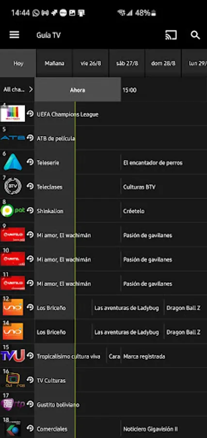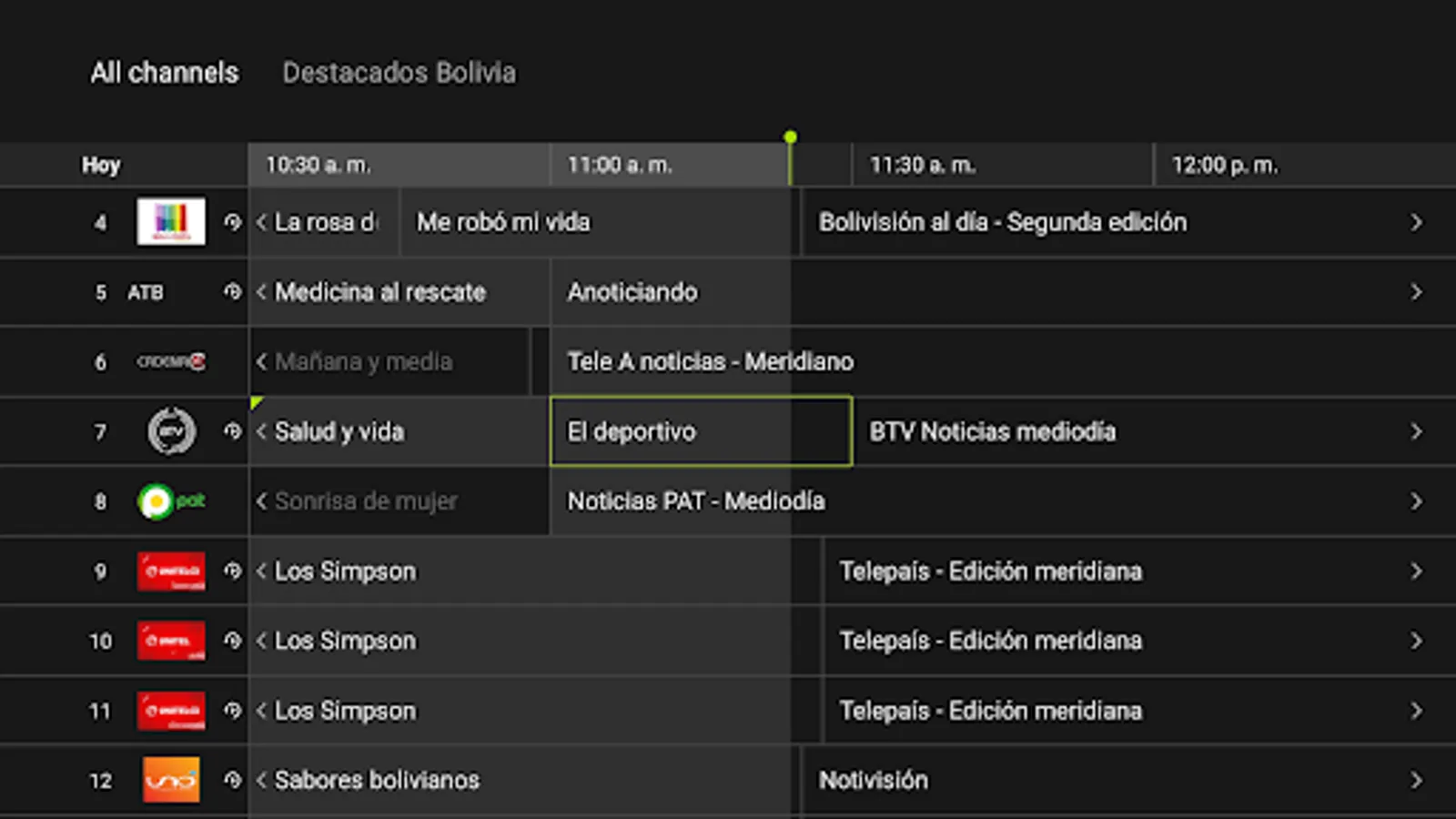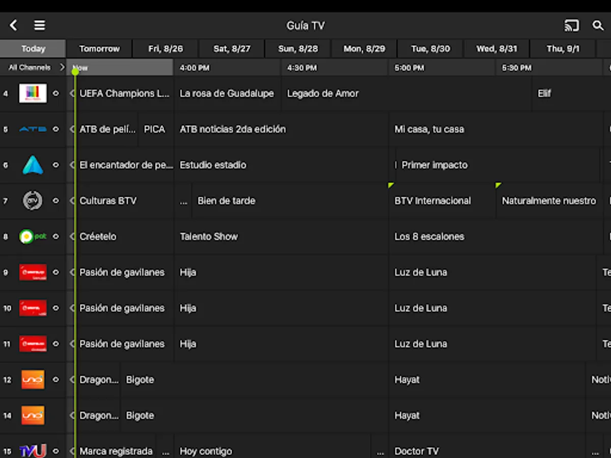 - The grid of channels and content assigned depends on the streaming plan contracted
