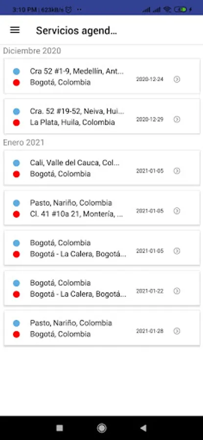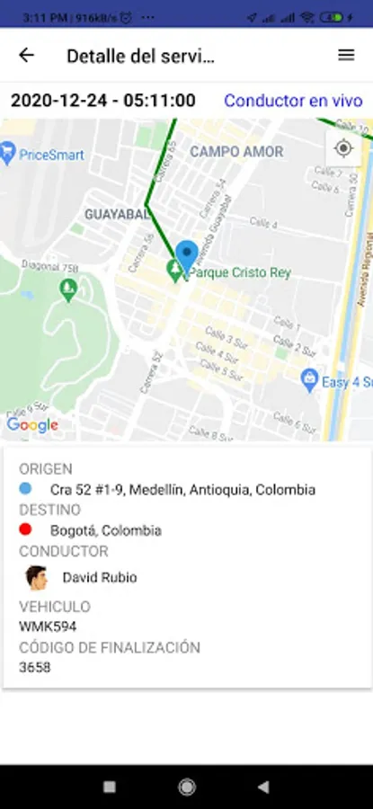 Application for the transport of personnel of the affiliated companies in Colombia, and for all types of users who wish to acquire our transport service, being able to consult the history of services, scheduled services, rate the driver, see the location of the vehicle in real time, etc. .