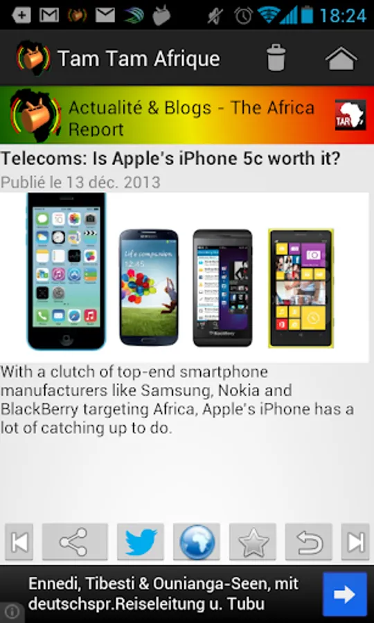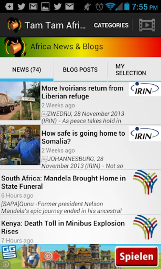 Stay tuned to Africa news on your android mobile device. News articles, videos, blog posts from most important panafrican news outlets on the web and from prominent African thought leaders.