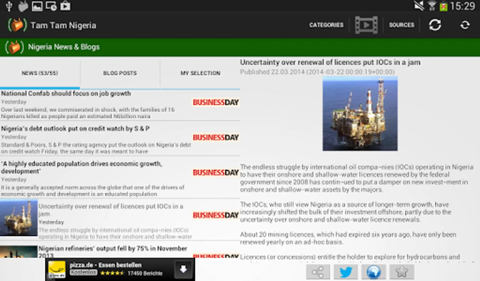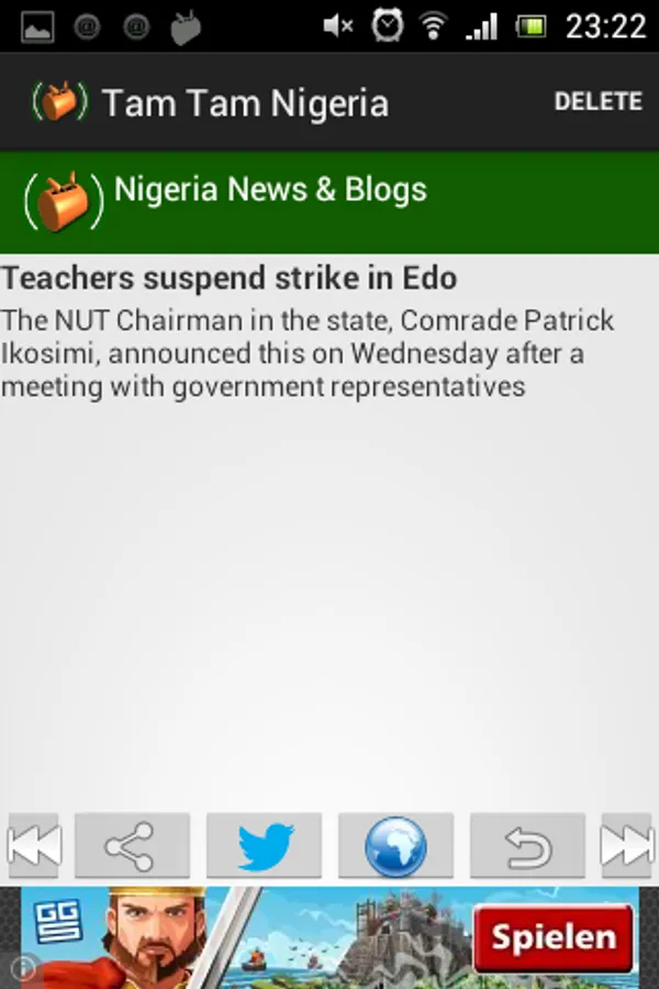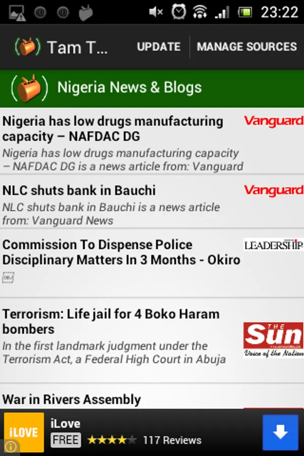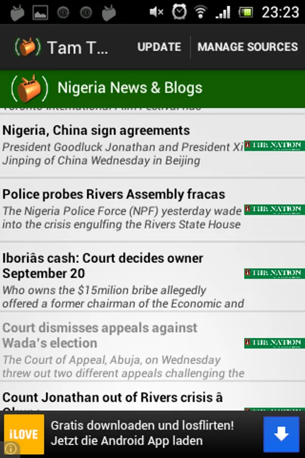 TT Nigeria News App for Android is a fast and intuitive app to stay up-to-date.with latest Nigeria news from politics, sports and entertainment. Read news articles and posts from most succesful Nigerian blogs and news outlets on the web, even when offline.