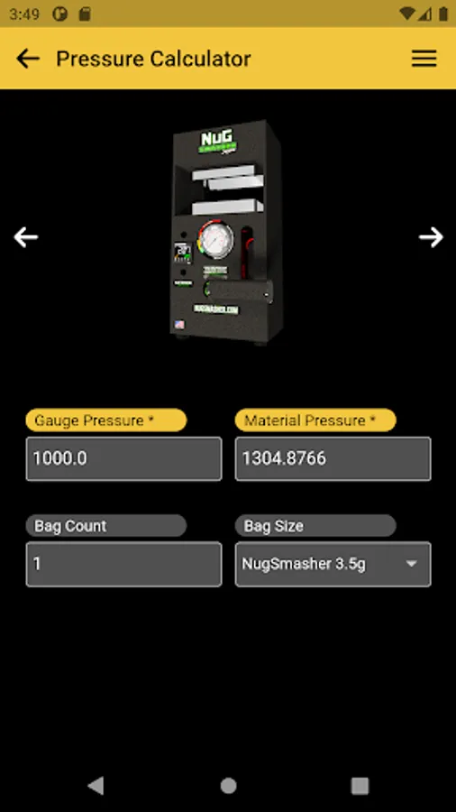 Welcome to the NugSmasher® official app, this app offers easy to use pressure calculators, yield calculator, user manuals and and built-in timer.