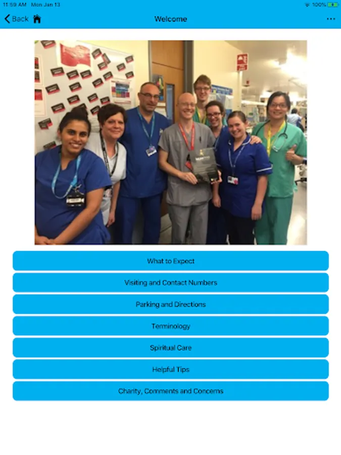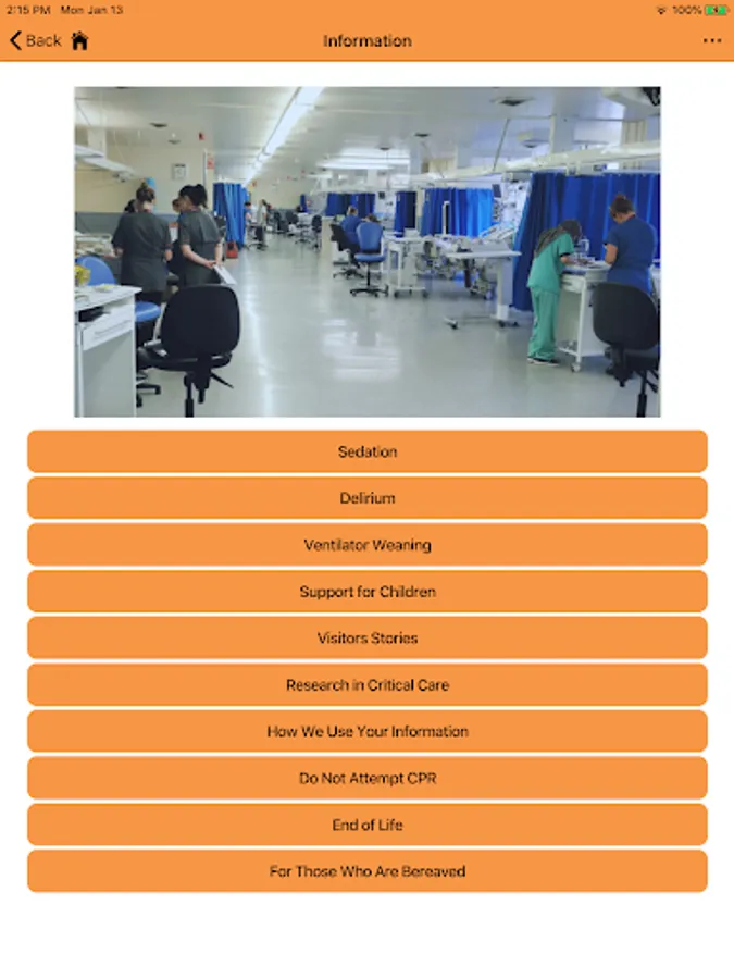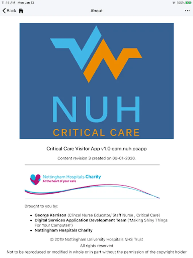 An application designed to provide help and guidance information for visitors to Critical Care at the Nottingham University Hospitals NHS Trust (NUH) Queens Medical Centre and City Hospital campuses.