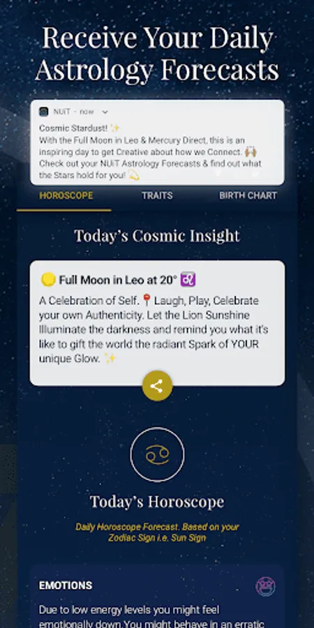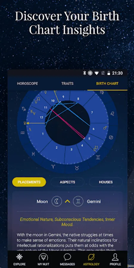 NUiT will then generate your Astrology Chart and translate your Birth Details into your Cosmic Personality Traits.