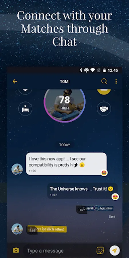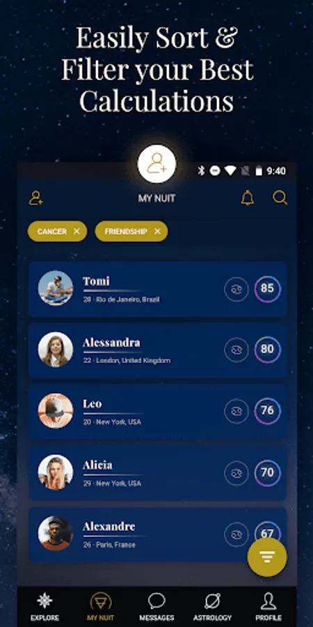 Before initiating a Connection, NUiTers are provided with Compatibility Scores and Insights for every Profile, directly calculated from the two Individuals' Birth Charts and how they relate to one another.