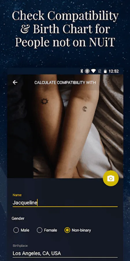 * Calculate your Compatibility/Synastry manually with any Person of your Interest & generate their Birth Chart, even if they are not on the App yet!