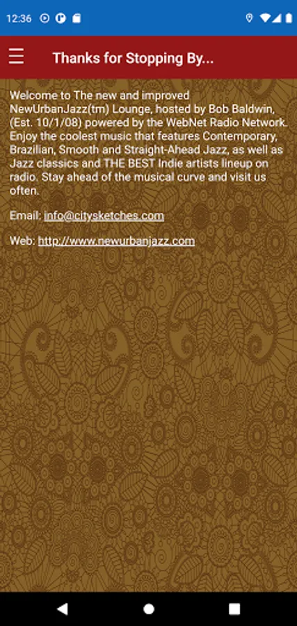 NewUrbanJazz continues to reach new heights, with conversations in the SouthEast and Mid-Atlantic regions, headed by Bob Baldwin's "NewUrbanJazz Lounge", a weekly 2-hour program that features all cornerstones of jazz from all around the world.