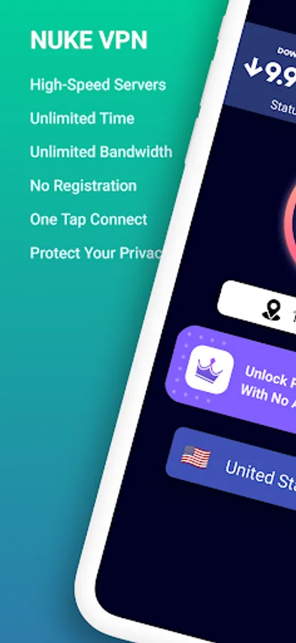 VPN NUKE - Free Unlimited VPN For Android, super fast VPN to proxy sites, watch videos and movies, protect WiFi security and protect privacy.